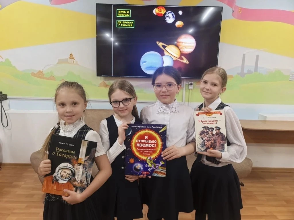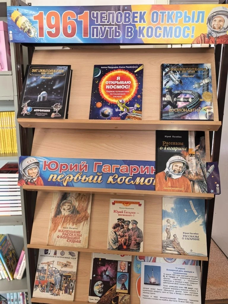 ко Дню космонавтики — и это не просто книги, а настоящий космический квест! Разгадывайте ребусы, решайте кроссворды и смотрите яркую презентацию: кто справится со всеми заданиями, тот готов к полёту
