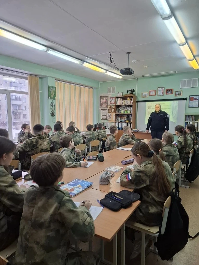 18.02.2026 года старший инспектор ДПС ГИБДД УМВД России по г. Новокузнецку, старший лейтенант полиции Еремин С.В. провел профилактическую беседу с учащимися 5 "А" класса.