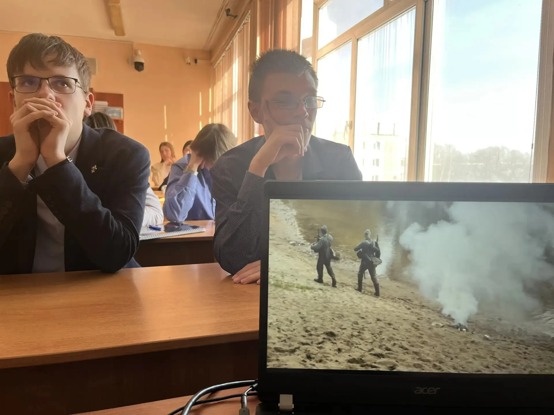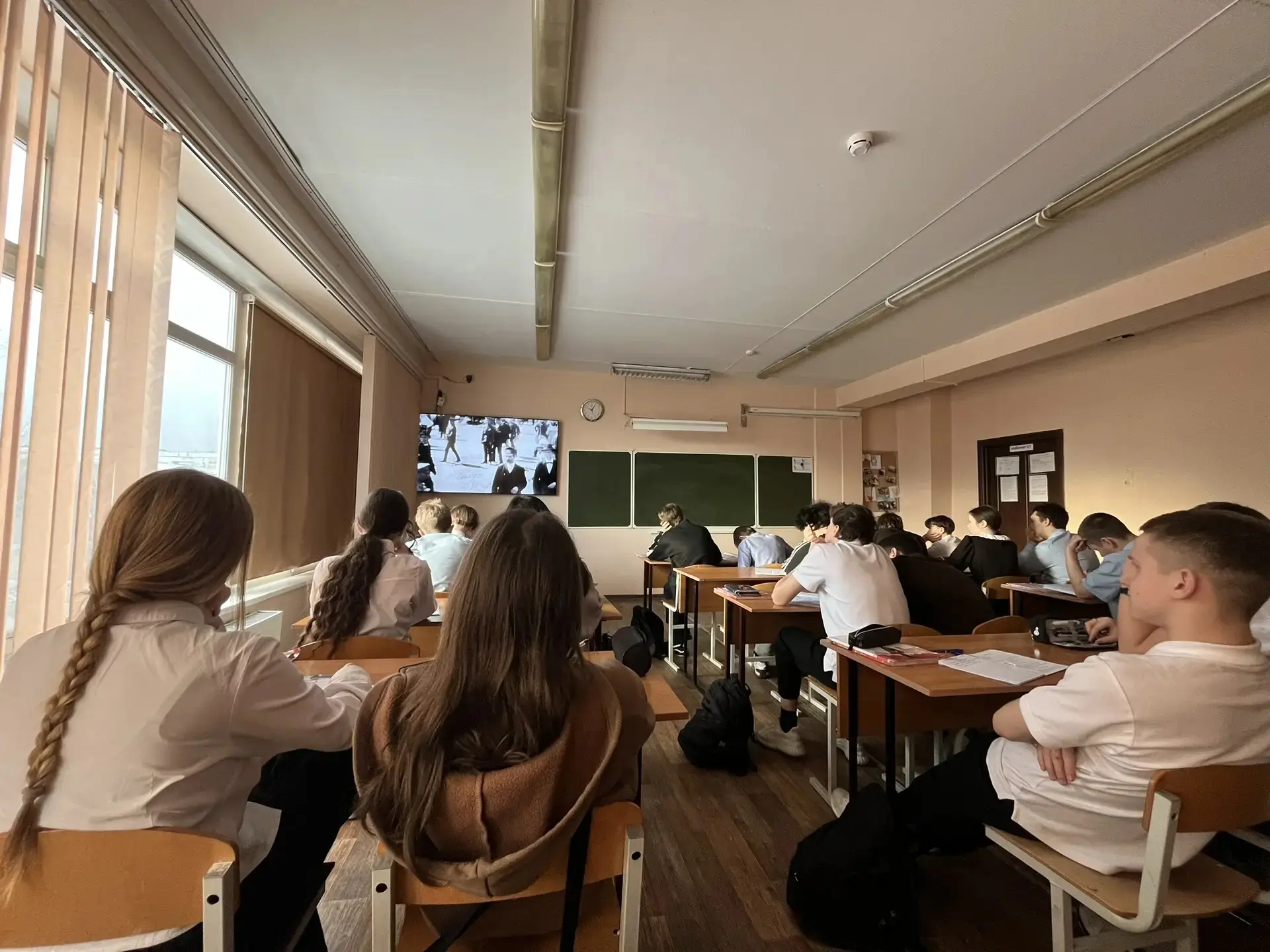 На уроке истории 9-10 классы совместно с учителем истории и обществознания Валентиной Игоревной, в преддверии Дня защитника Отечества посмотрели фильм "Солдатик".