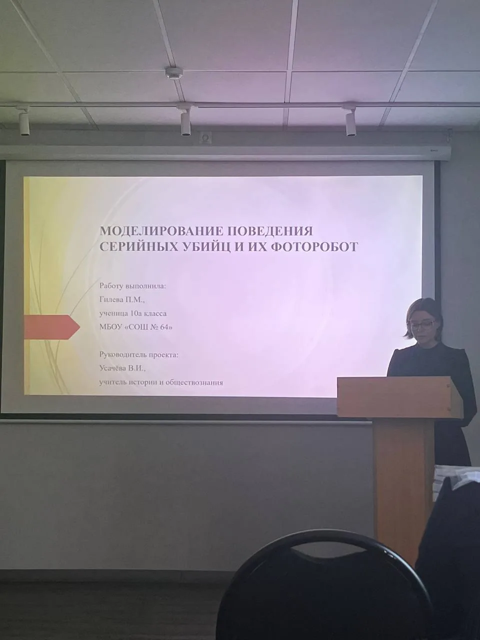 Нашу школу представляла ученица 10 «А» класса Гилева Полина с уникальной работой на тему «Моделирование поведения серийных убийц и их фоторобот».