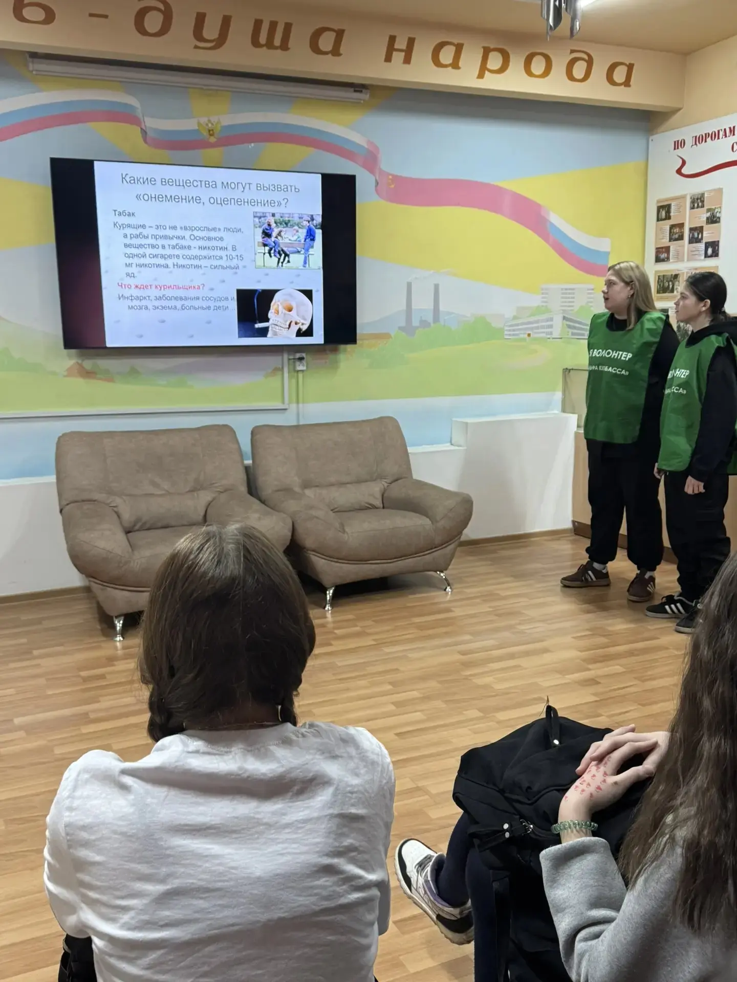 В 7-9-ых классах волонтеры под руководством куратора провели профилактические беседы и рассказали ребятам, что наркомания это смертельно опасная болезнь и проблема, которая решается очень трудно и не имеет на сегодняшний день достаточно эффективных методов лечения.