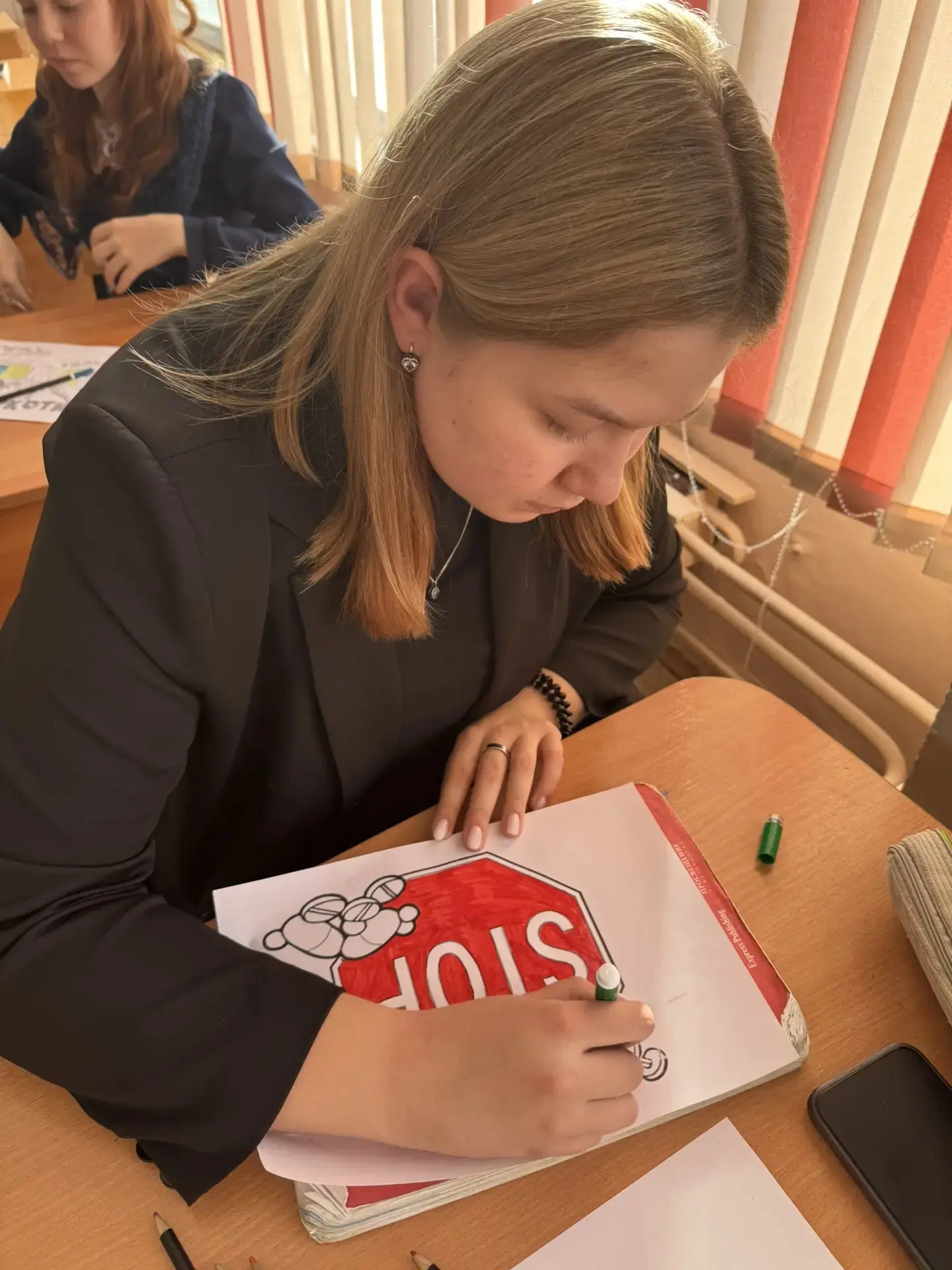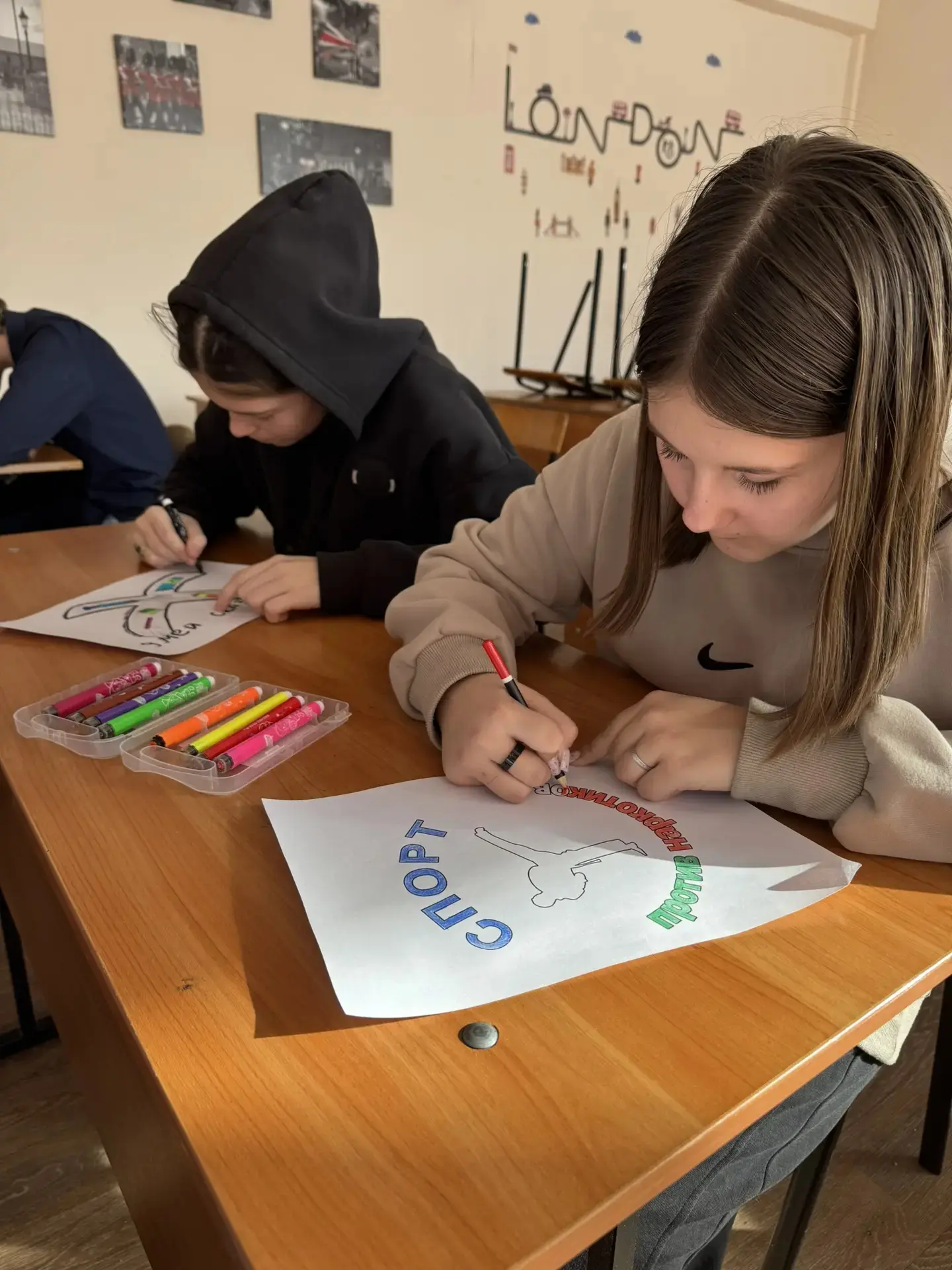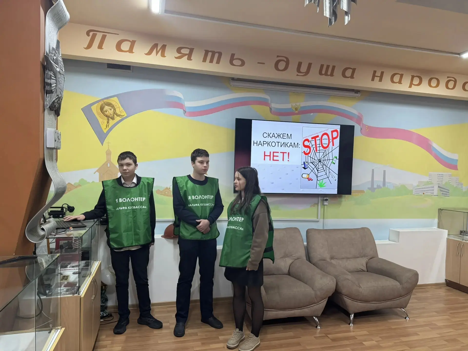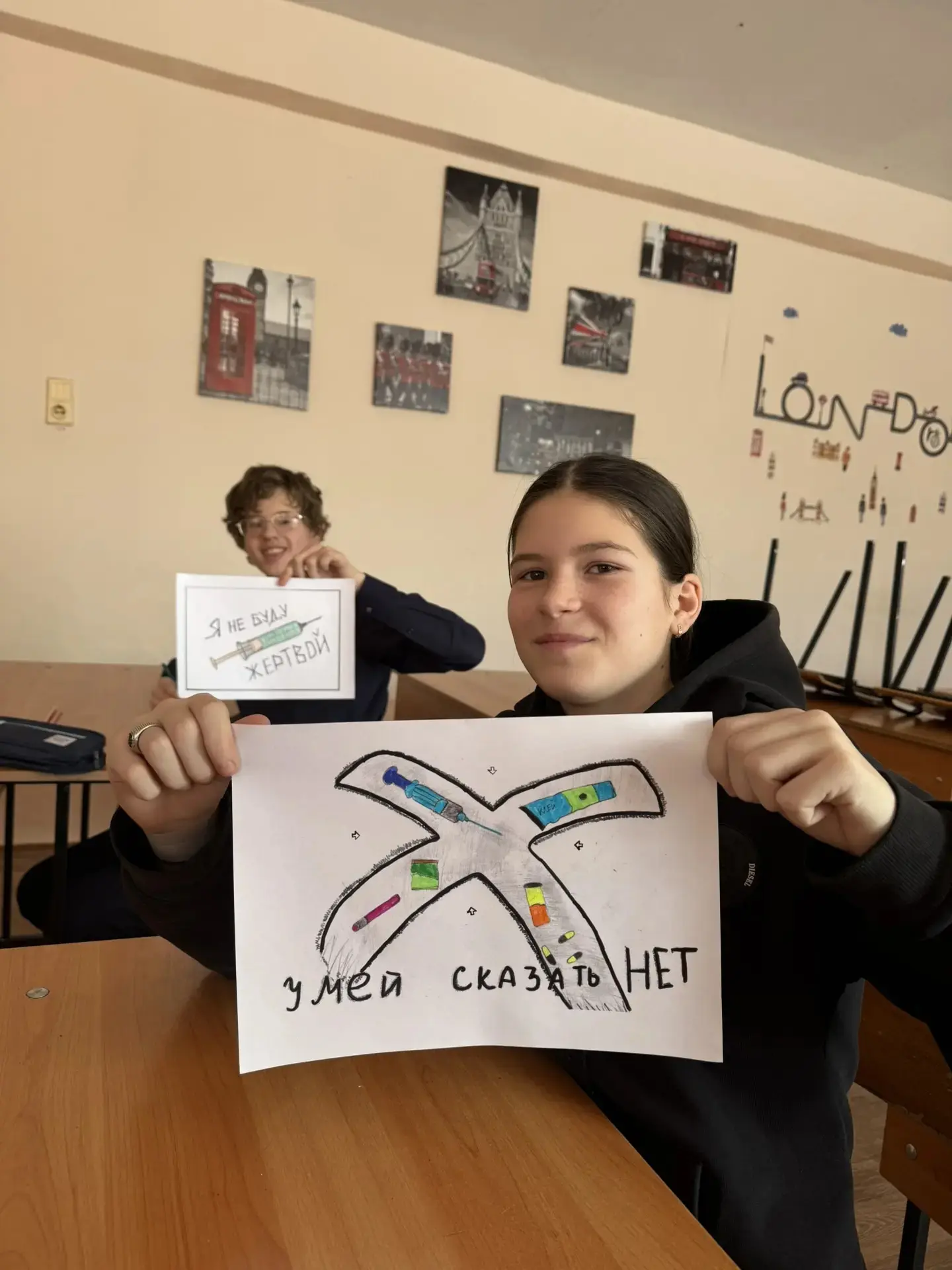 Также волонтеры подготовили мотивационные рисунки для 7-ых классов и организовали выставку «Мы против наркотиков», напоминая, что сохранять свое здоровье - это заниматься спортом, соблюдать правила личной гигиены, и сказать «НЕТ!» всем пагубным привычкам!