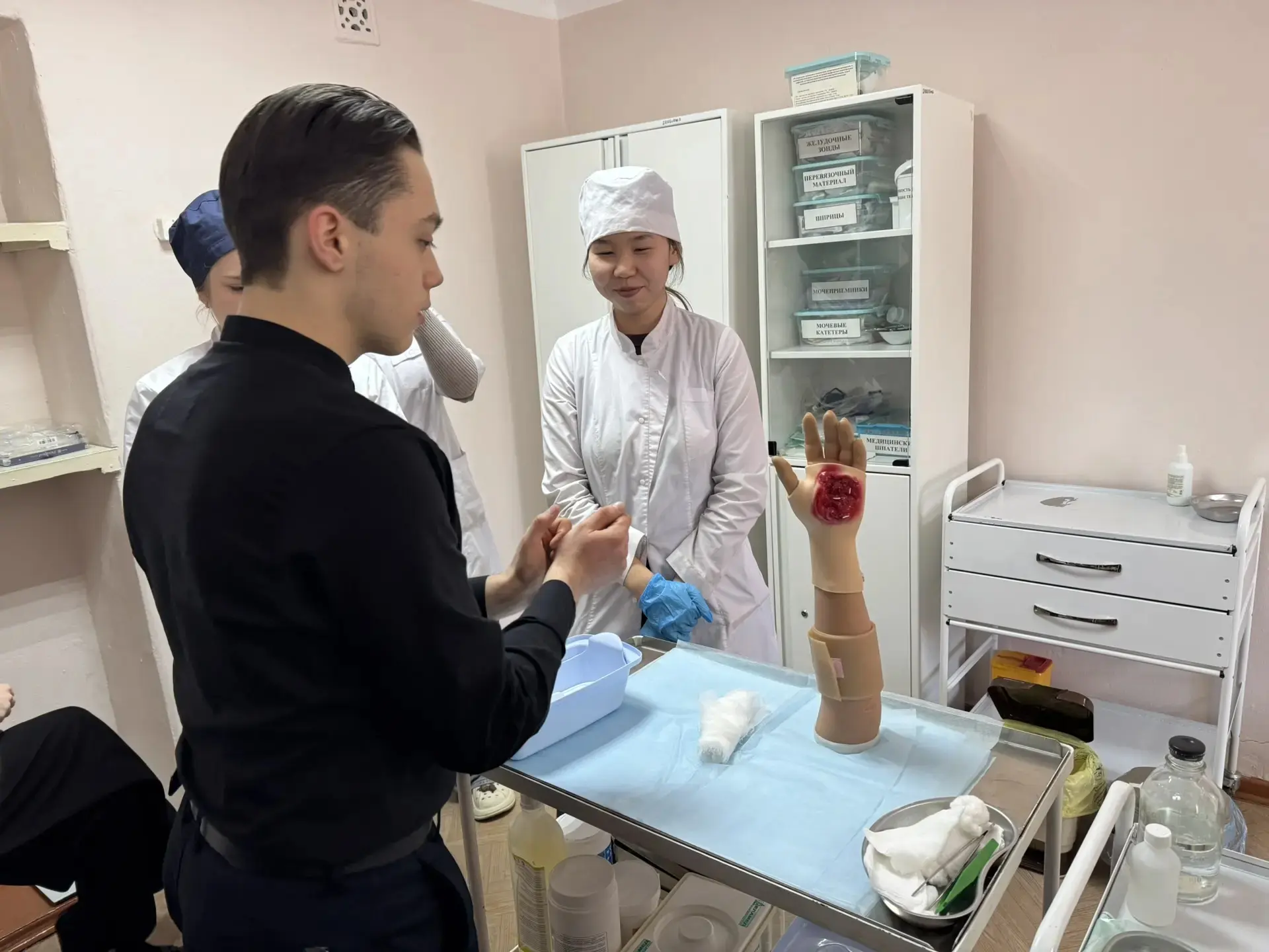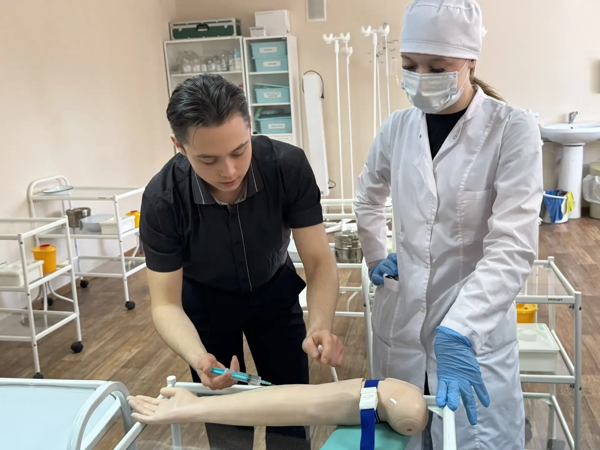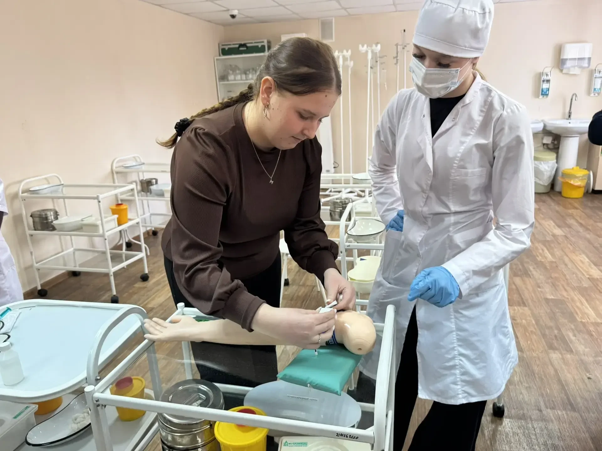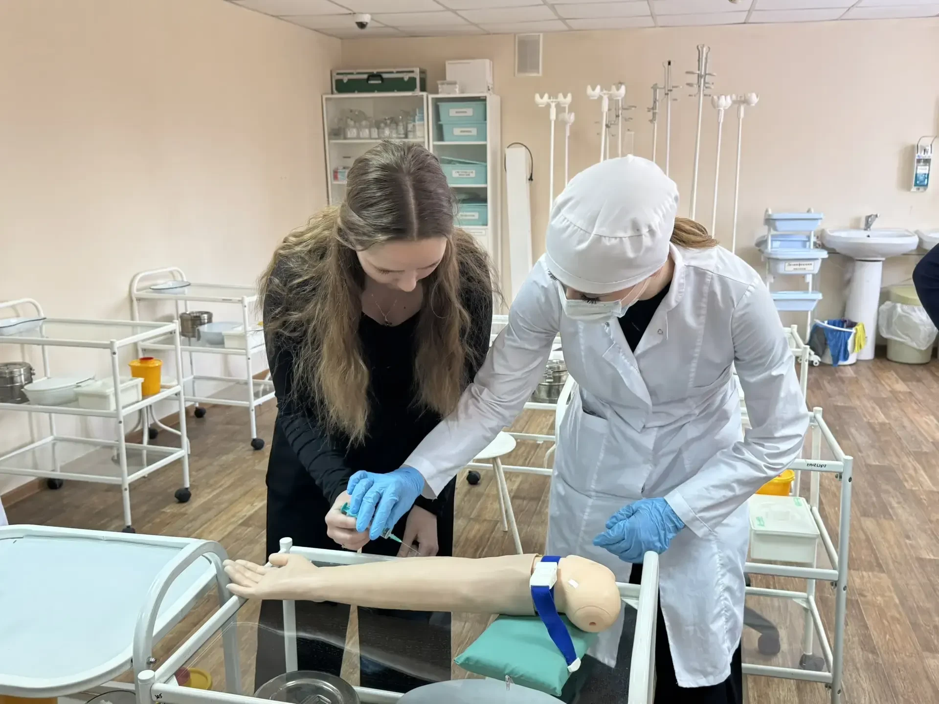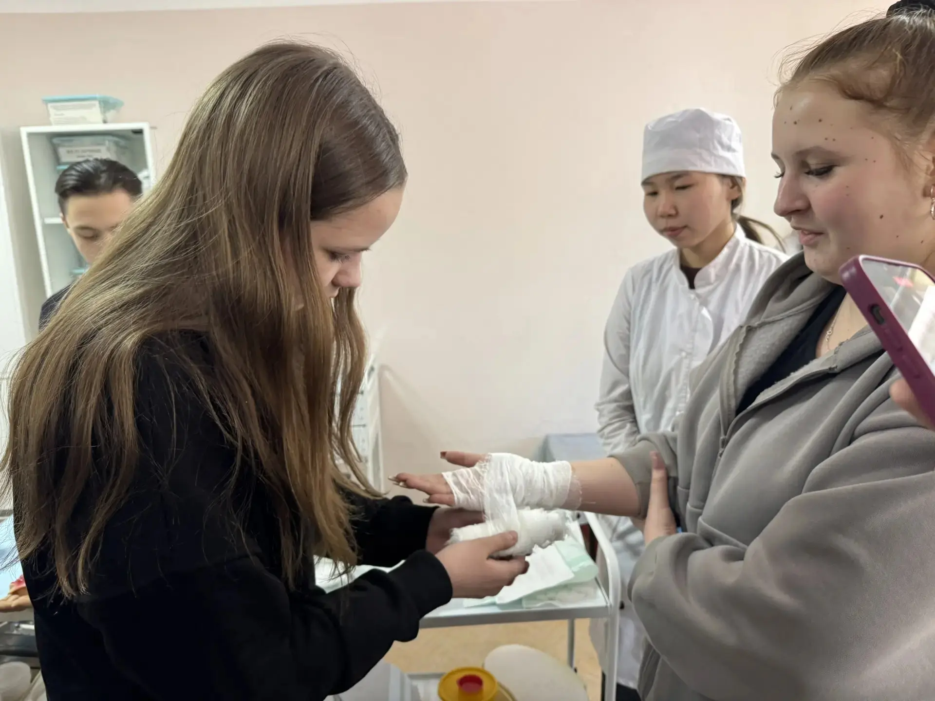 ✅Учащиеся смогли познакомиться с профессиями, связанными с медициной: сначала познакомились с основными направлениями подготовки будущих специалистов, узнали о требованиях к поступлению и учебе в медицинском колледже. Затем школьники приняли участие в мастер-классах, где попробовали себя в роли настоящих медиков — учились измерять давление, пеленать малыша, оказывать первую медицинскую помощь.