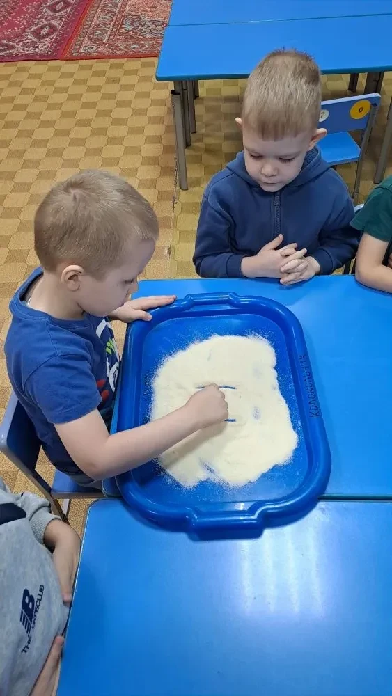 Дети писали, выкладывали из счетных палочек и прописывали на манной крупе новую букву, придумывали слова с заданным звуком.