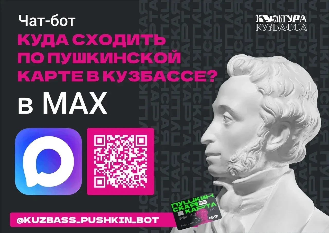 В мессенджере MAX появился чат-бот «Куда сходить по Пушкинской карте в Кузбассе». Он интегрирован с платформой «Культура.РФ» и показывает подборку ближайших мероприятий — без перехода на сторонние сайты.