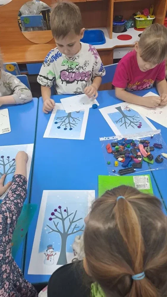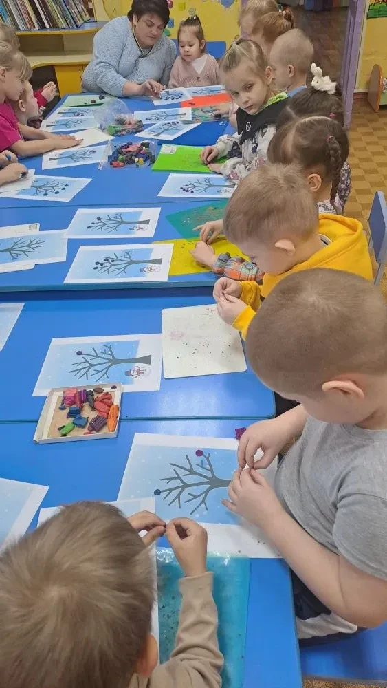 В группе "Колокольчик" прошло интересное занятие на тему "Зимнее дерево".