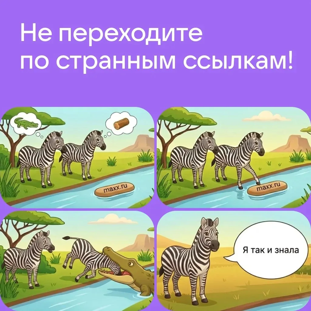 🔹 Изучите маршрут: посмотрите на ссылку и домен (основная часть ссылки, обычно стоит перед «.ru» или «.рф»). Подозрительные ссылки часто маскируются под известные сайты — например, вместо «max.ru» в такой ссылке будет написано «maxx.ru»