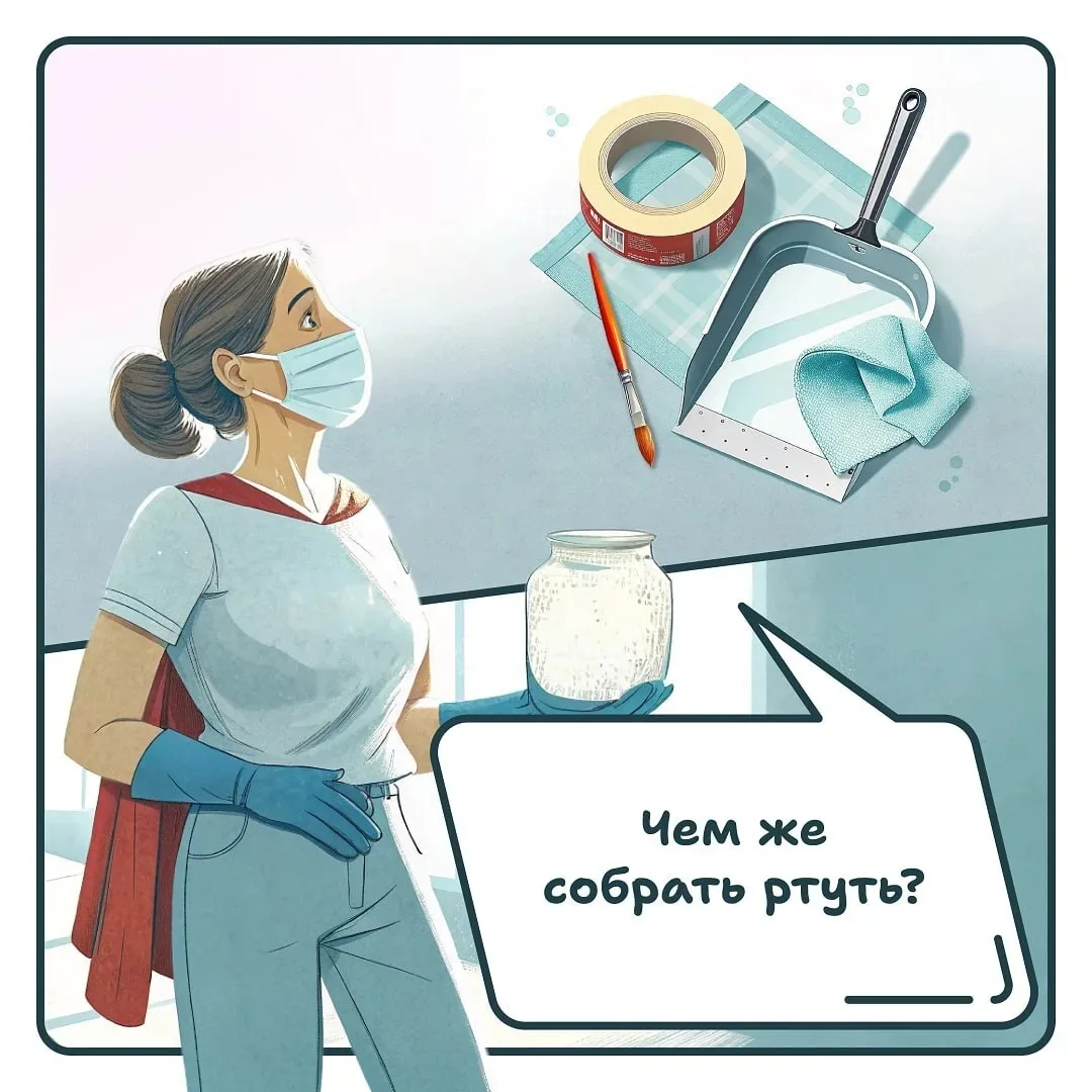 ‼️ Важно! Если ртуть вытекла из градусника, ни в коем случае не собирайте ее веником или пылесосом. Собирайте ртуть в перчатках ватным диском или кистью для рисования на бумагу А4. Поместите ртуть в стеклянную банку, наполовину наполненную водой, и закройте плотно крышкой.