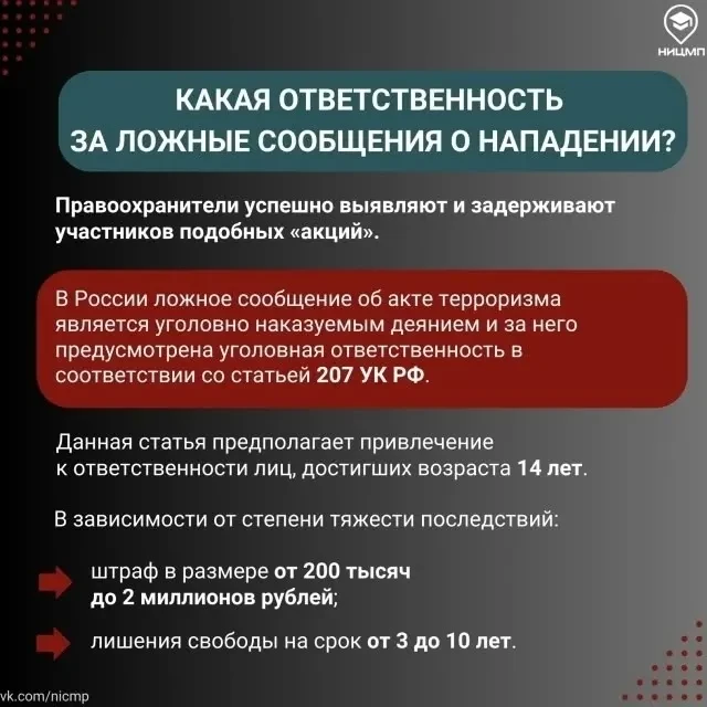 ‼ Внимание, фиксируются случаи ложных сообщений с угрозами вооруженных нападений на образовательные организации