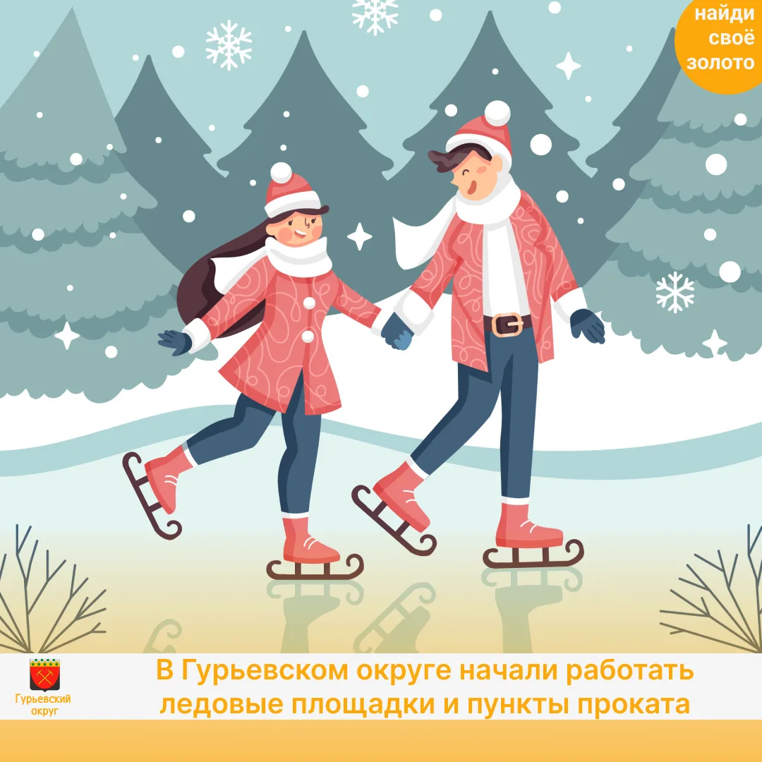 В Гурьевском округе начали работать ледовые площадки и пункты проката❄️