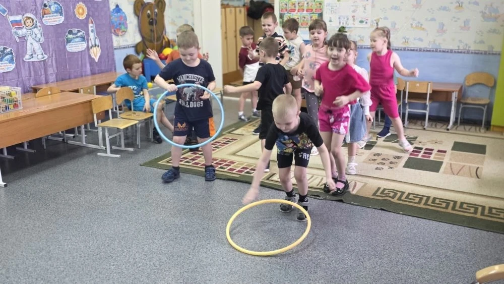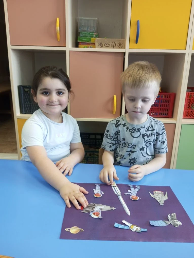 дети разделились на две команды — «Ракета» и «Спутник», чтобы проверить свои умения в спортивных соревнованиях и отправиться покорять бескрайние просторы Космоса.