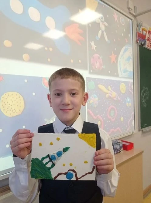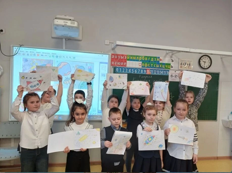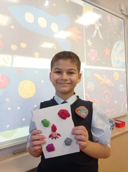 📌Ученики 4 «В» класса отправились в настоящее «путешествие к звёздам», чтобы познакомиться с историей освоения космоса и подвигами его героев. За несколько дней до праздника классный руководитель предложил ребятам подготовить короткие сообщения о знаменитых космонавтах. С большим энтузиазмом дети взялись за работу: кто-то выбрал Юрия Гагарина, кто-то — Валентину Терешкову, а некоторые заинтересовались судьбами Андрияна Николаева и Алексея Леонова. На уроках изобразительного искусства ученики оформили свои доклады яркими рисунками, а на классном часе с увлечением рассказывали о покорителях космоса. Одноклассники слушали друг друга с интересом, задавали вопросы и узнавали новые удивительные детали.