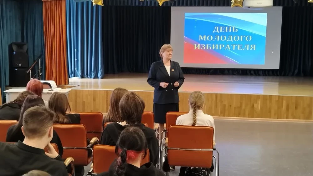 Директор школы, Татьяна Ивановна Карпачева, провела беседу для 9–11‑х классов о важности участия в выборах, принципах демократии и правах молодых избирателей.