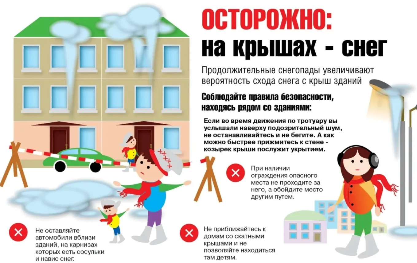 1. Будьте внимательны: передвигаясь вблизи домов, обращайте внимание на крыши и наличие предупреждающих знаков.
