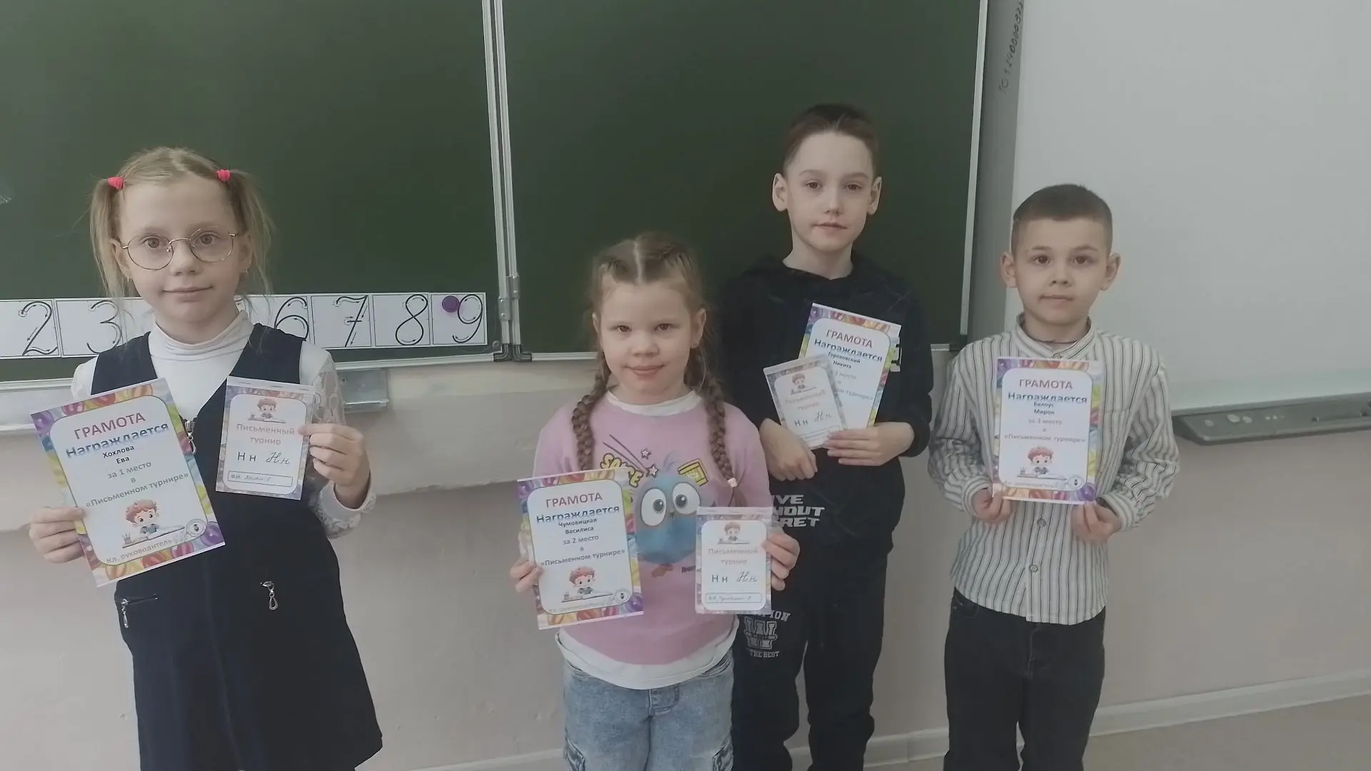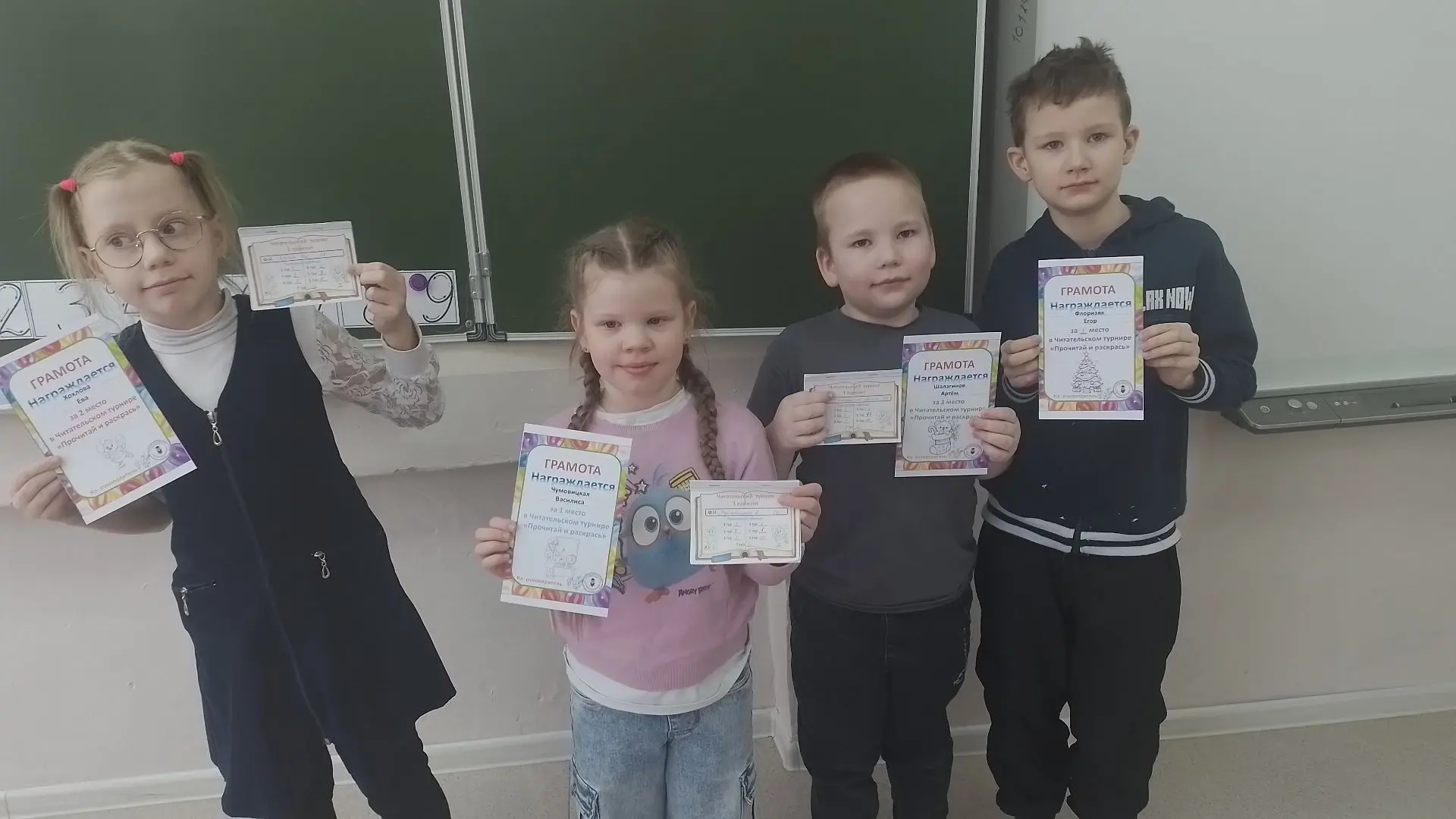 🌟28 февраля первоклассники попрощались с Азбукой, а сегодня учащиеся 1 б класса подводят итоги письменного и читательского турниров. Целую неделю ребята старательно списывали с печатного текста буквы и слова. Читали тексты и в соответствии с прочитанным красили картинки. У кого-то получалось очень ловко, а кому-то было трудно. 💥Победителем письменного турнира стали: Хохлова Ева, Чумовицкая Василиса, Гороховский Никита, Белоус Мирон. 💥Победителями читательского турнира: Чумовицкая Василиса, Хохлова Ева, Шалагинов Артём, Флоризяк Егор. Пожелаем ребятам удачи в освоении новых предметов: литературного чтения и русского языка. 🔹Канал КОГОАУ СШ г.Лузы в МАХ | https://web.max.ru/-69203692554784