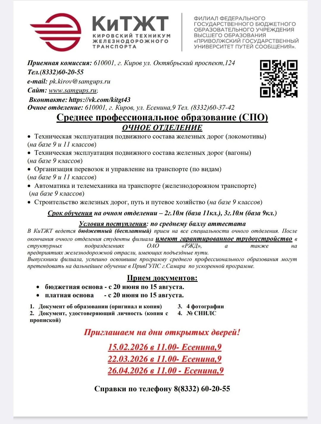 День открытых дверей в КиТЖТ (железнодорожный техникум) для абитуриентов и их родителей