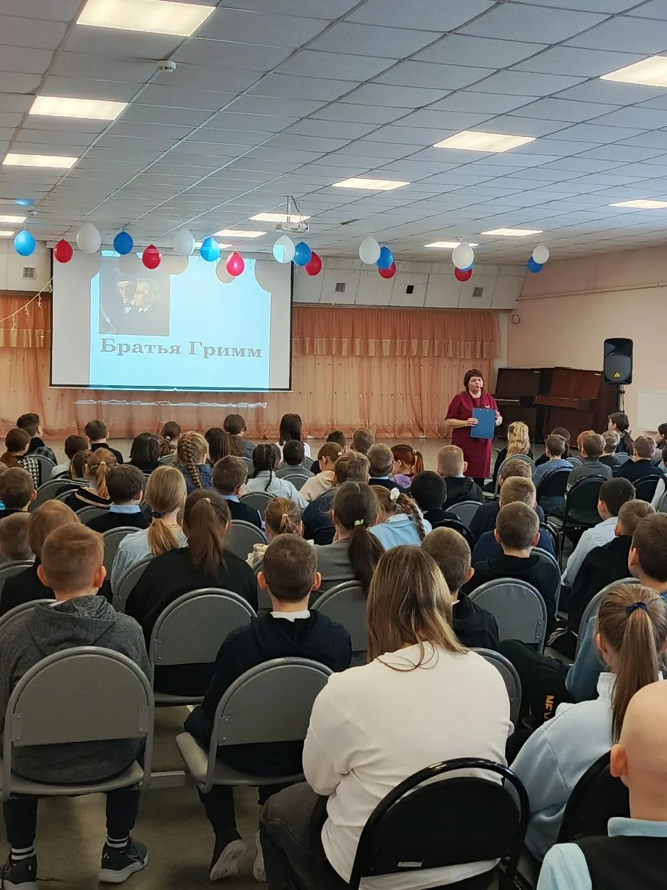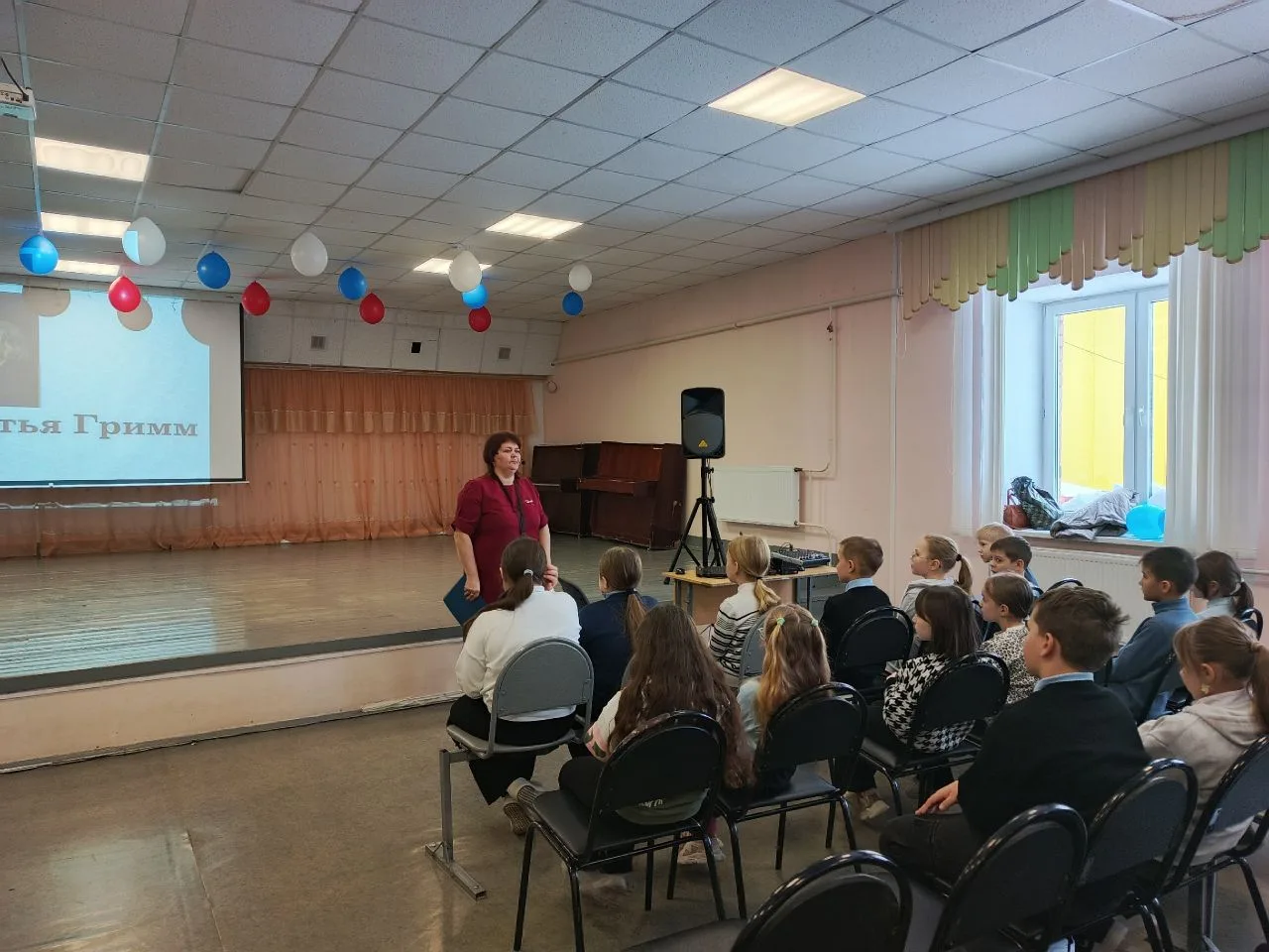 📌3 день: литературный час для учеников 1 классов по творчеству В. Сутеева «Две сказки про карандаш и краски», литературная игра для учеников 3-4 классов «И дружно говорим: «Идём мы к братьям Гримм!»;
