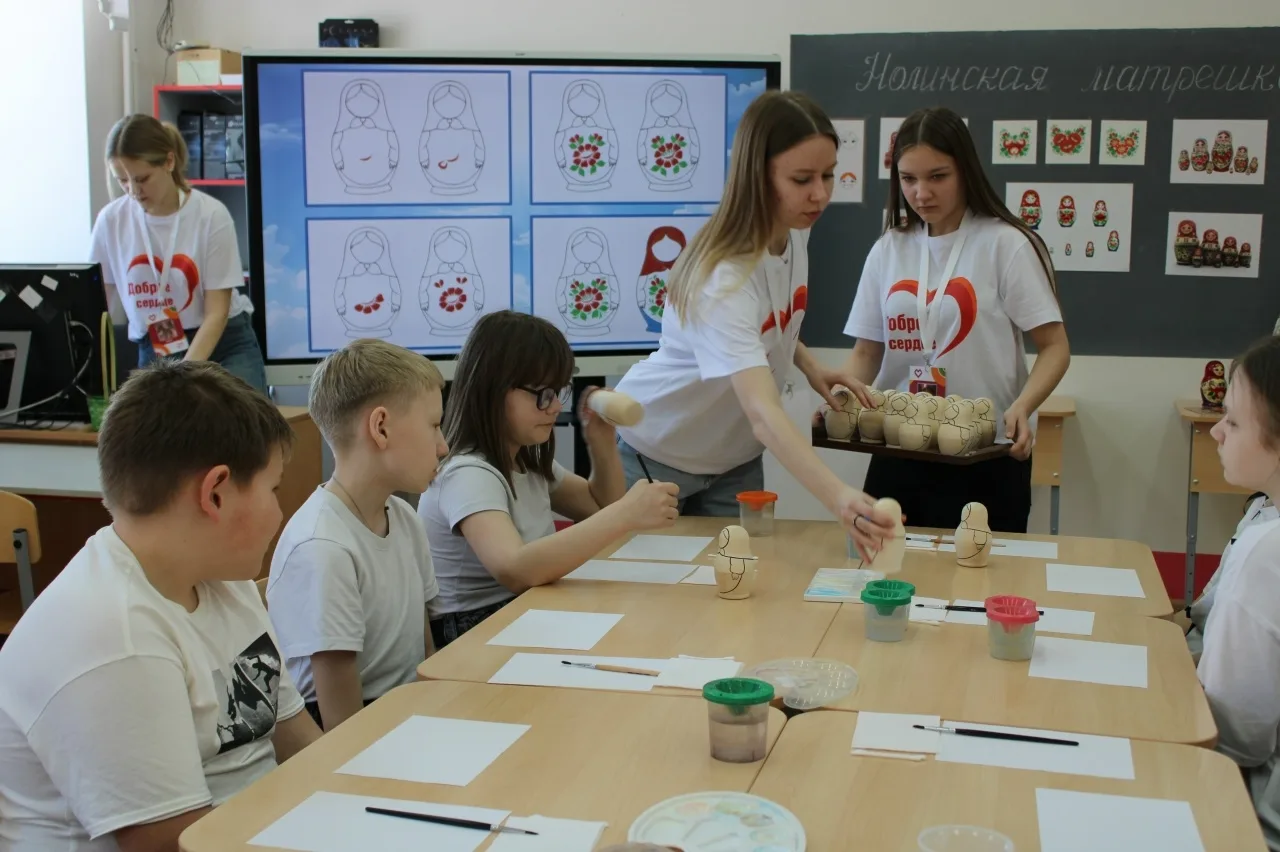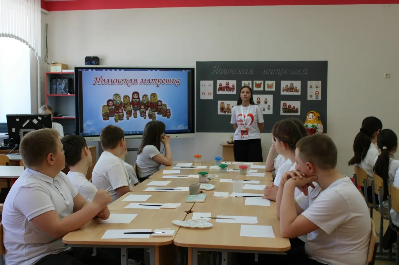 В рамках онлайн-марафона проекта «Разные. Смелые. Молодые» команда «Доброе сердце» средней школы города Нолинска провела для учеников 4г класса мастер-класс «Роспись нолинской матрешки».