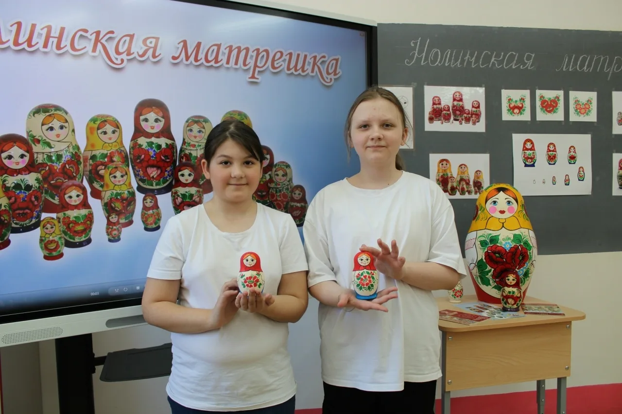 Ребята не просто взяли в руки кисти, а сначала отправились в увлекательное путешествие в историю. Школьники узнали, как появилась нолинская матрешка и какой непростой путь проходит деревянная заготовка, прежде чем рождается знаменитая на весь мир кукла.