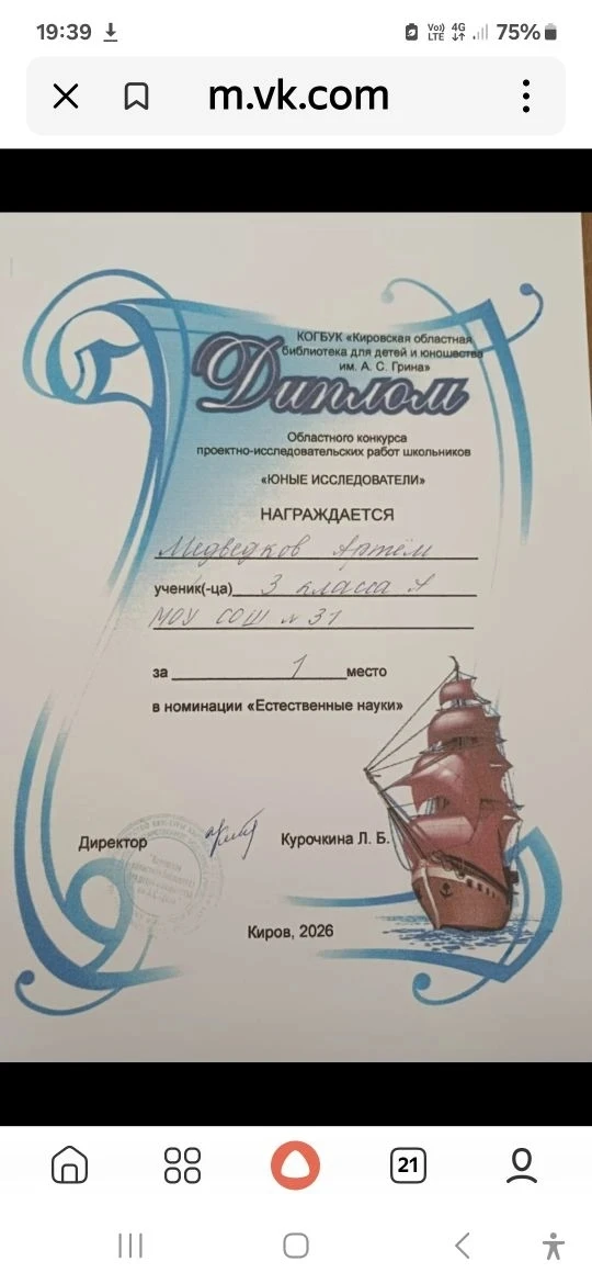 Поздравлям юного исследователя Медведкова Артёма с Дипломом 1 степени и достойными выступлениями на конференции.