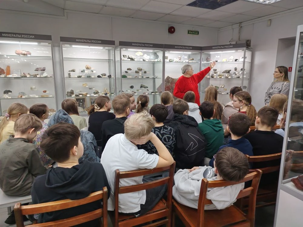 Ученики 5б класса посетили палеонтологический музей ВятГАТУ, где узнали о минералах России, их особенностях и легендах, связанных с ними