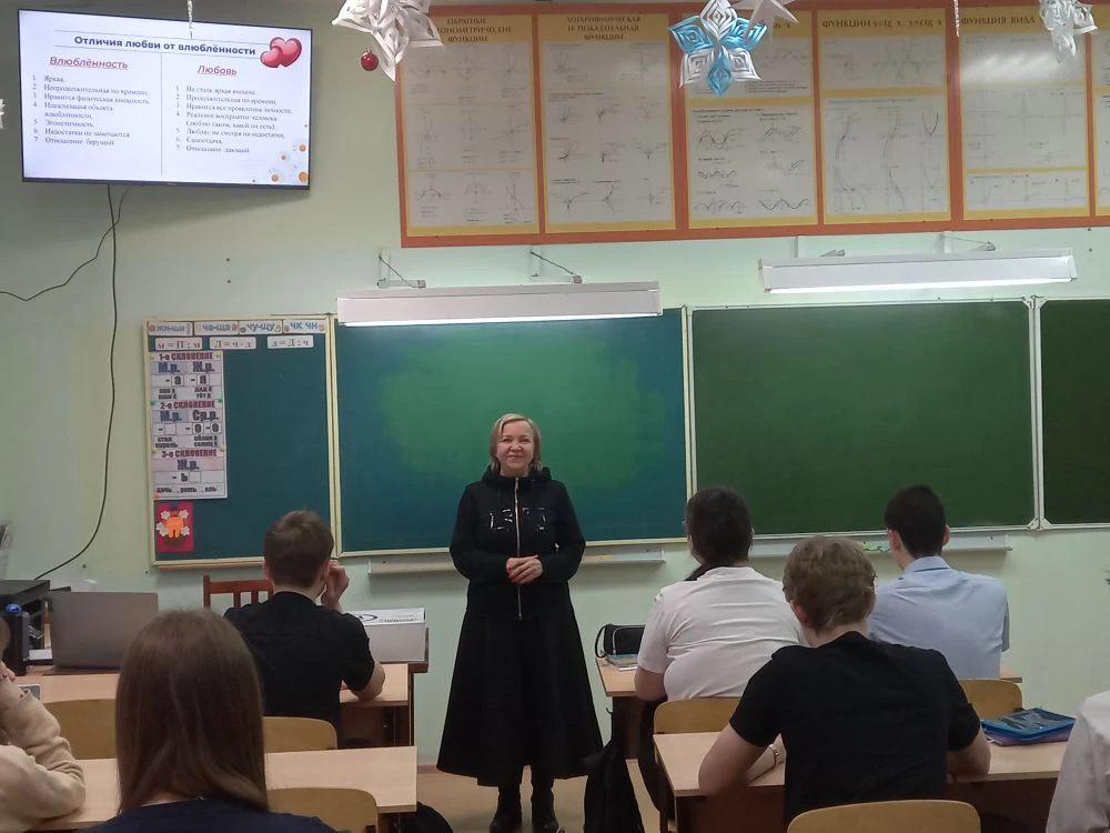 23 января 2026г.в нашей школе специалист центра "Моя семья" Устюжанина Ольга Ильинична провела 4 лекции в 9х, 10 классах в рамках проекта "Разговор о любви".
