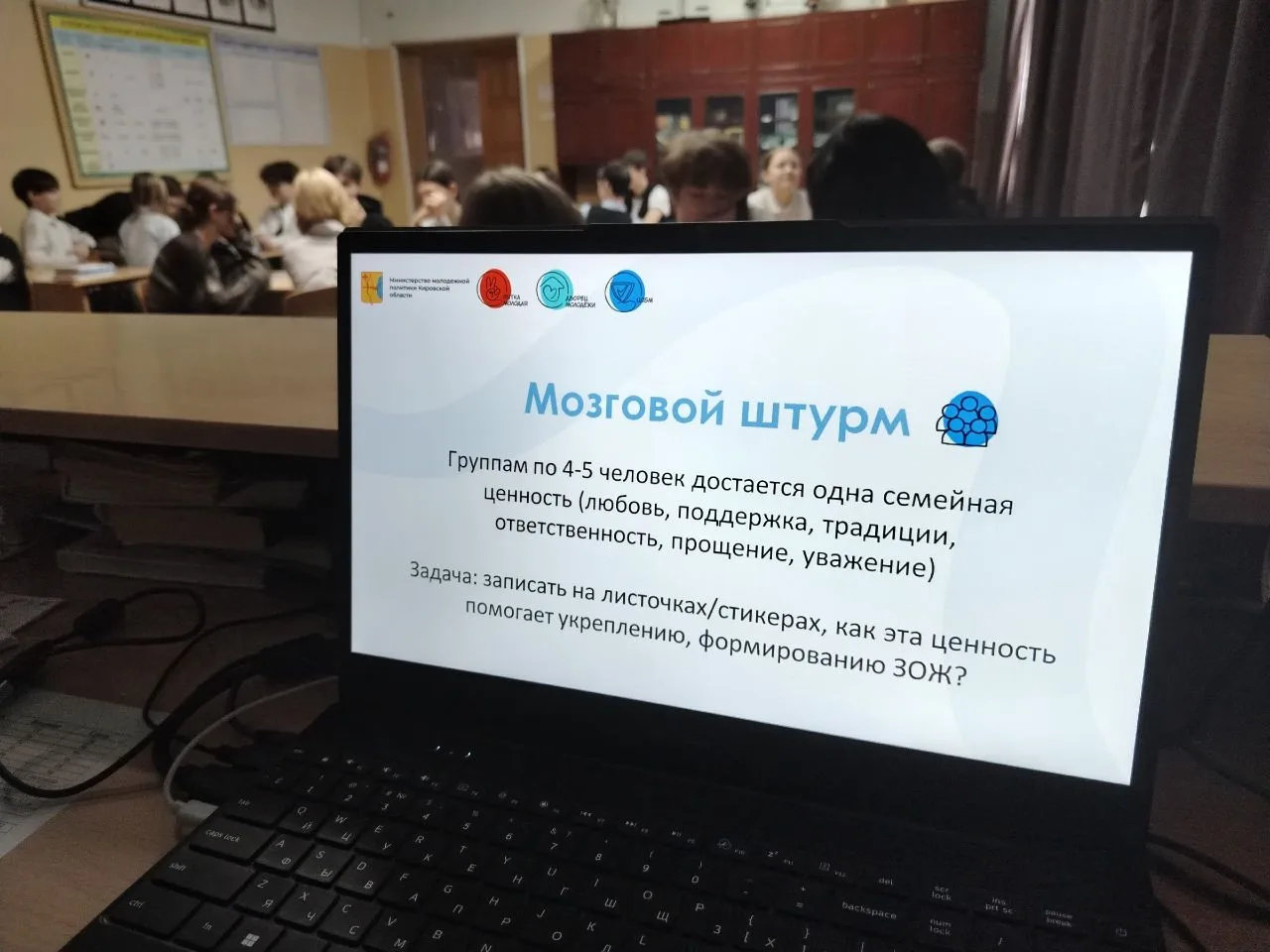 Сегодня специалист молодёжного клуба «Импульс» провела для учеников 7-ых классов занятие по формированию ЗОЖ «Интерактивный диалог. Семейные ценности в контексте ЗОЖ».