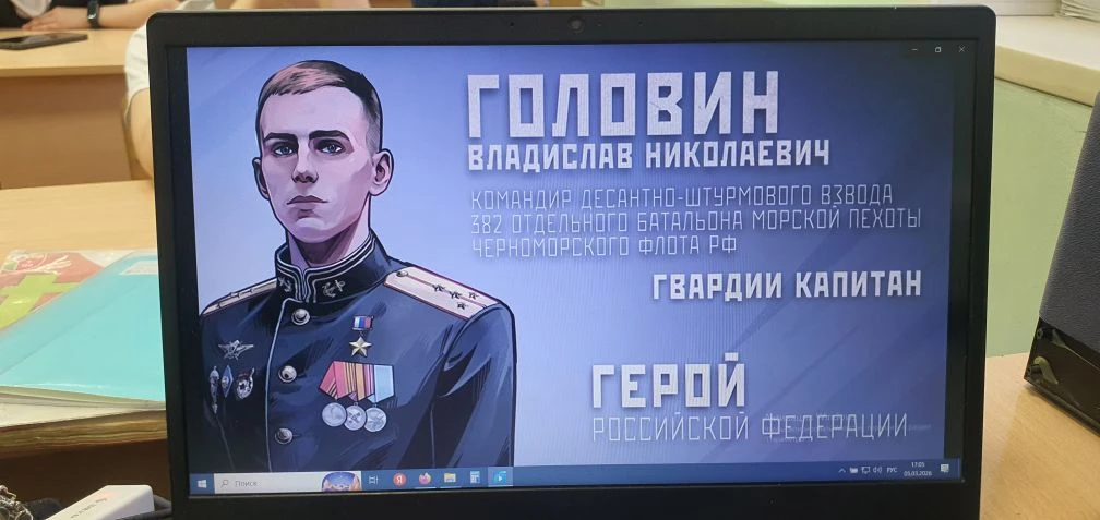 Обучающиеся нашей школы приняли участие в тематическом классном часе, посвящённом Герою Российской Федерации — Головину Владиславу Николаевичу.