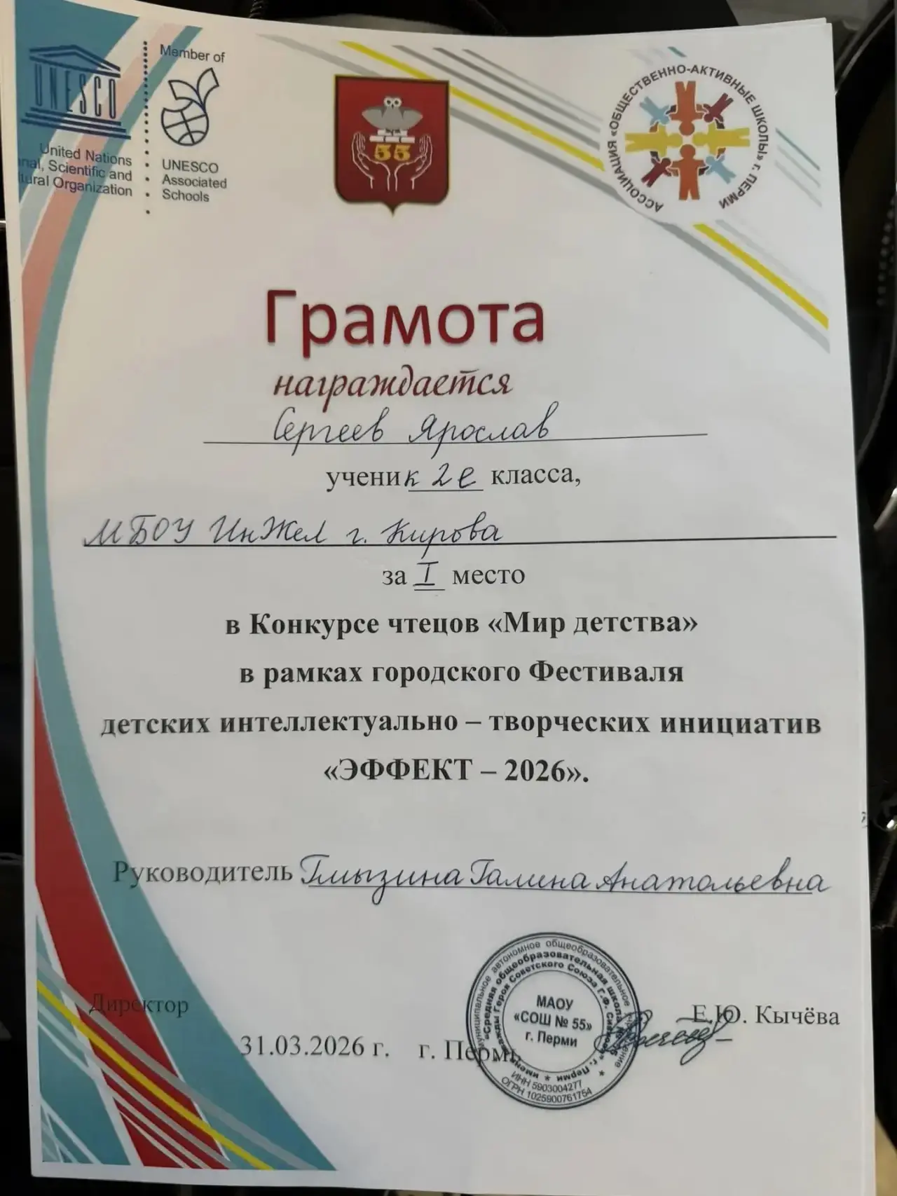 Наши самые маленькие лицеисты приняли участие в Пермском фестивале детских интеллектуально-творческих инициатив «ЭФФЕКТ - 2026» 🌟