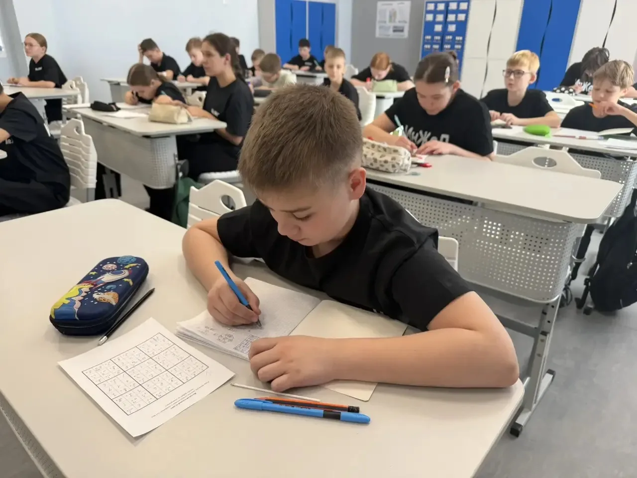 ☑️ продолжением активной работы стали задачи, которые лицеисты решали с особым удовольствием! Вместе с педагогами они учились делить фигуру на равные части, комбинировать цифры, собирать числовые цепочки, находить засекреченную информацию и подбирать коды доступа.