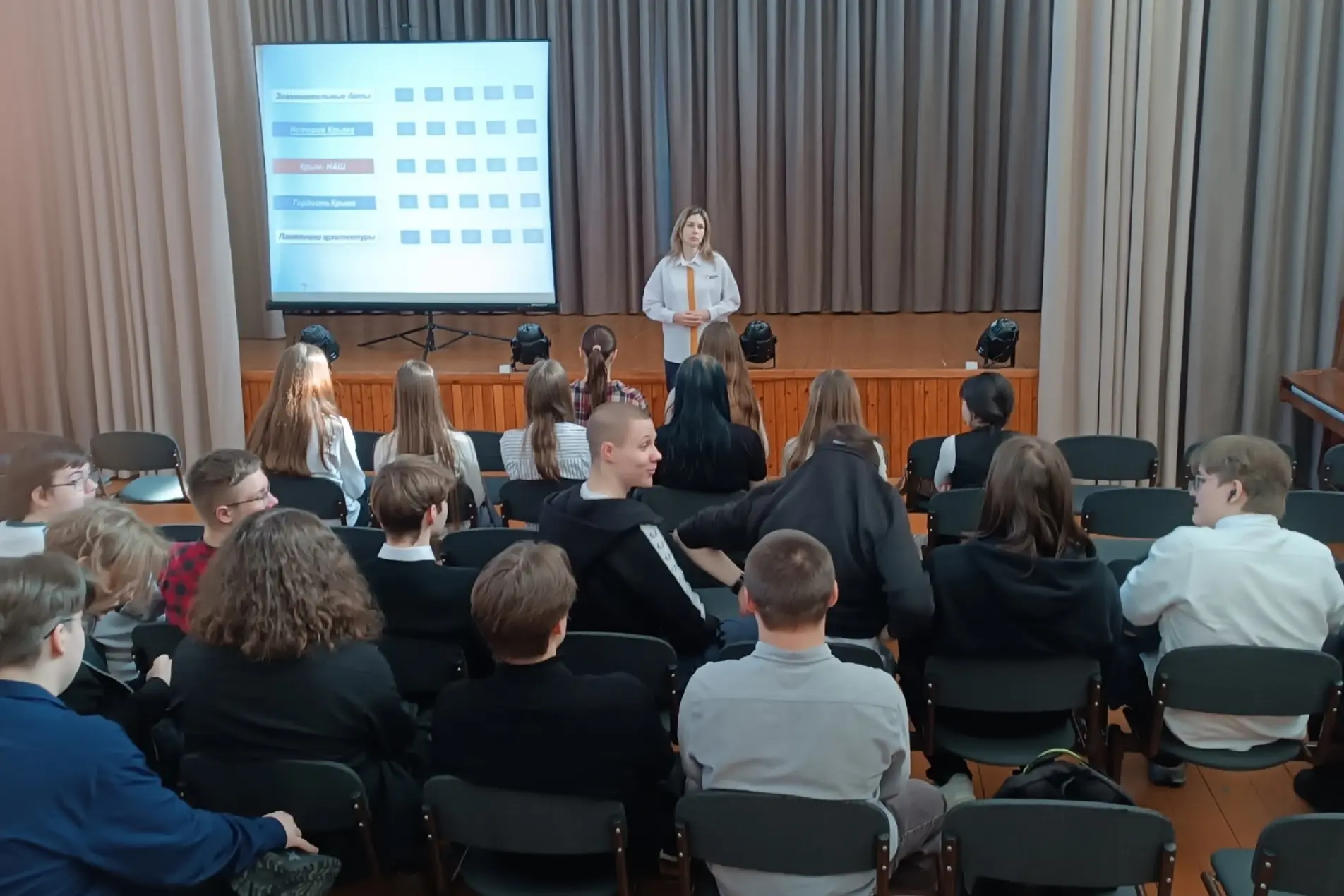 Мероприятия, посвященные этой памятной дате, прошли в нашей школе. Кинолекторий "100 лет Артеку" и квиз "Крым-наш" нашли живой отклик у обучающихся. Вместе с советником директора по воспитанию дети обсудили события 12-летней давности.