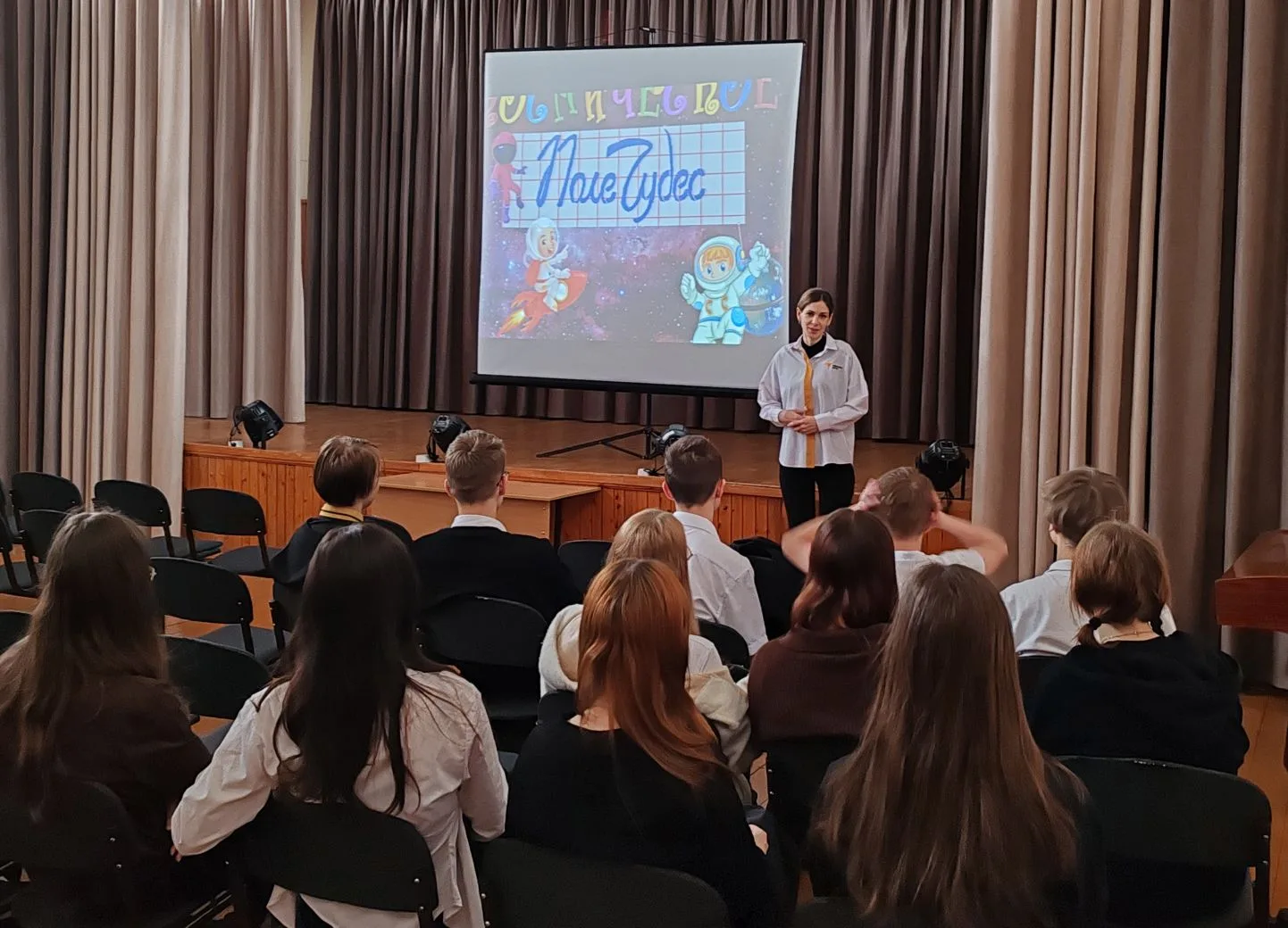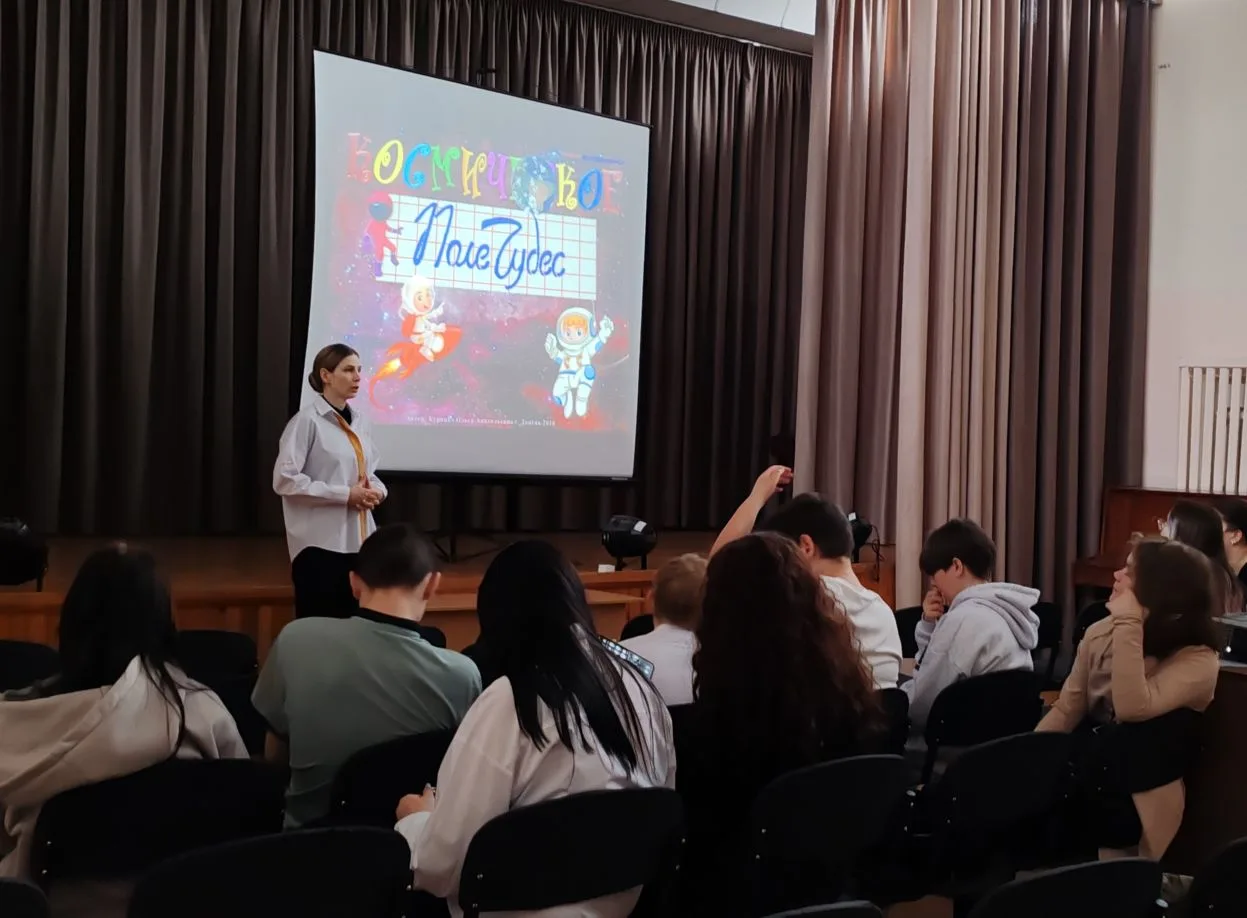 . Вместе с советником директора по воспитанию ребята вспомнили знаменитых космонавтов, конструкторов и ещё много интересного, связанного с космосом.