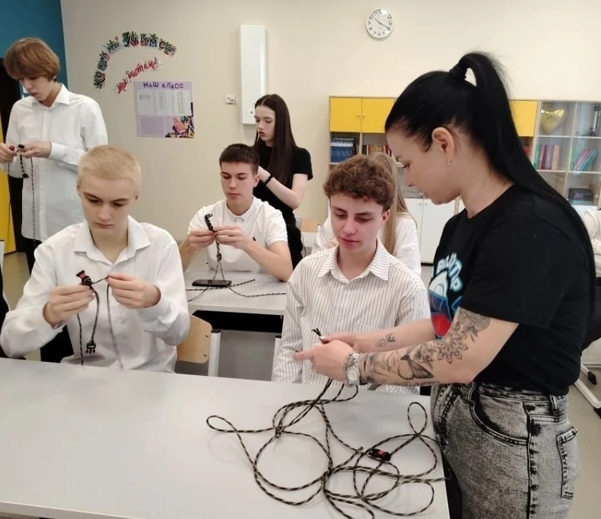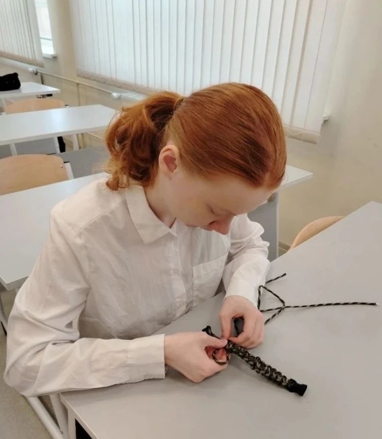 🇷🇺В нашей школе прошёл мастер-класс по изготовлению браслетов выживания для участников СВО. Его участниками стали ученики 10-го класса и педагоги.