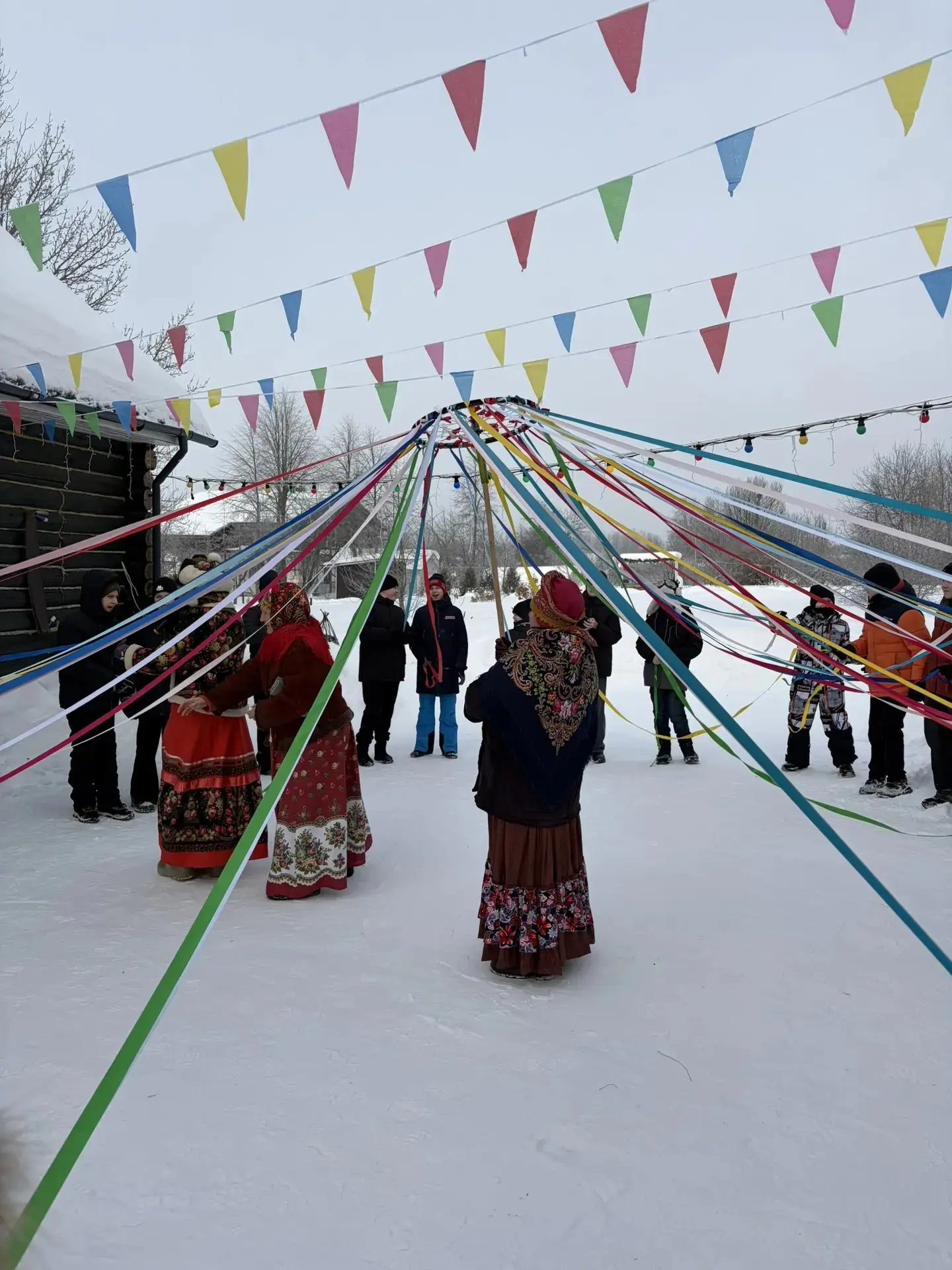 ☀На улице царила атмосфера веселья: хороводы, танцы, игры. Всё было по-настоящему, с размахом. В тёплом доме работала творческая мастерская, на игровой поляне проходили игры, а в заключительной части программы состоялась чайная церемония с угощением блинами и кашей, приготовленной на костре.