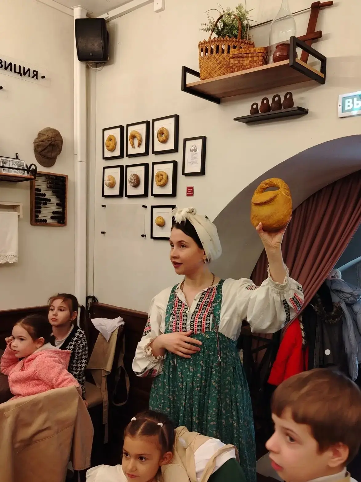 🥨Кульминацией поездки стал визит в знаменитый Трактир "Калачная". Там, в рамках профориентационной программы, юные "Орлята" перевоплотились в пекарей. Радушные купчихи не только рассказали ребятам историю появления знаменитого русского калача, но и раскрыли секреты мастерства: первоклассники учились работать со скалкой, месить тесто и придавать калачам характерную форму с красивой ручкой.