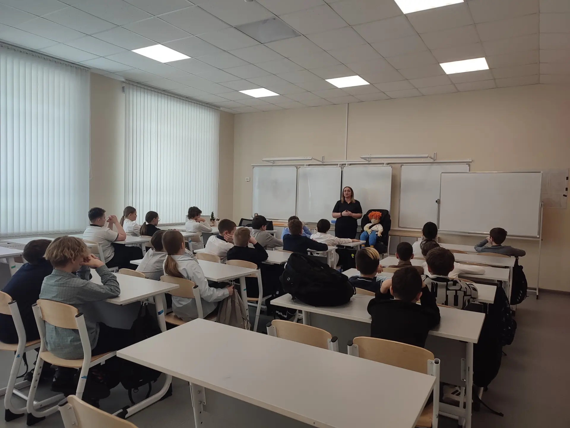 🇷🇺Встреча была посвящена доблестным защитникам страны, став диалогом между поколениями. Ученики 8-х и 9-х классов узнали о качествах современного офицера и важности верности традициям.