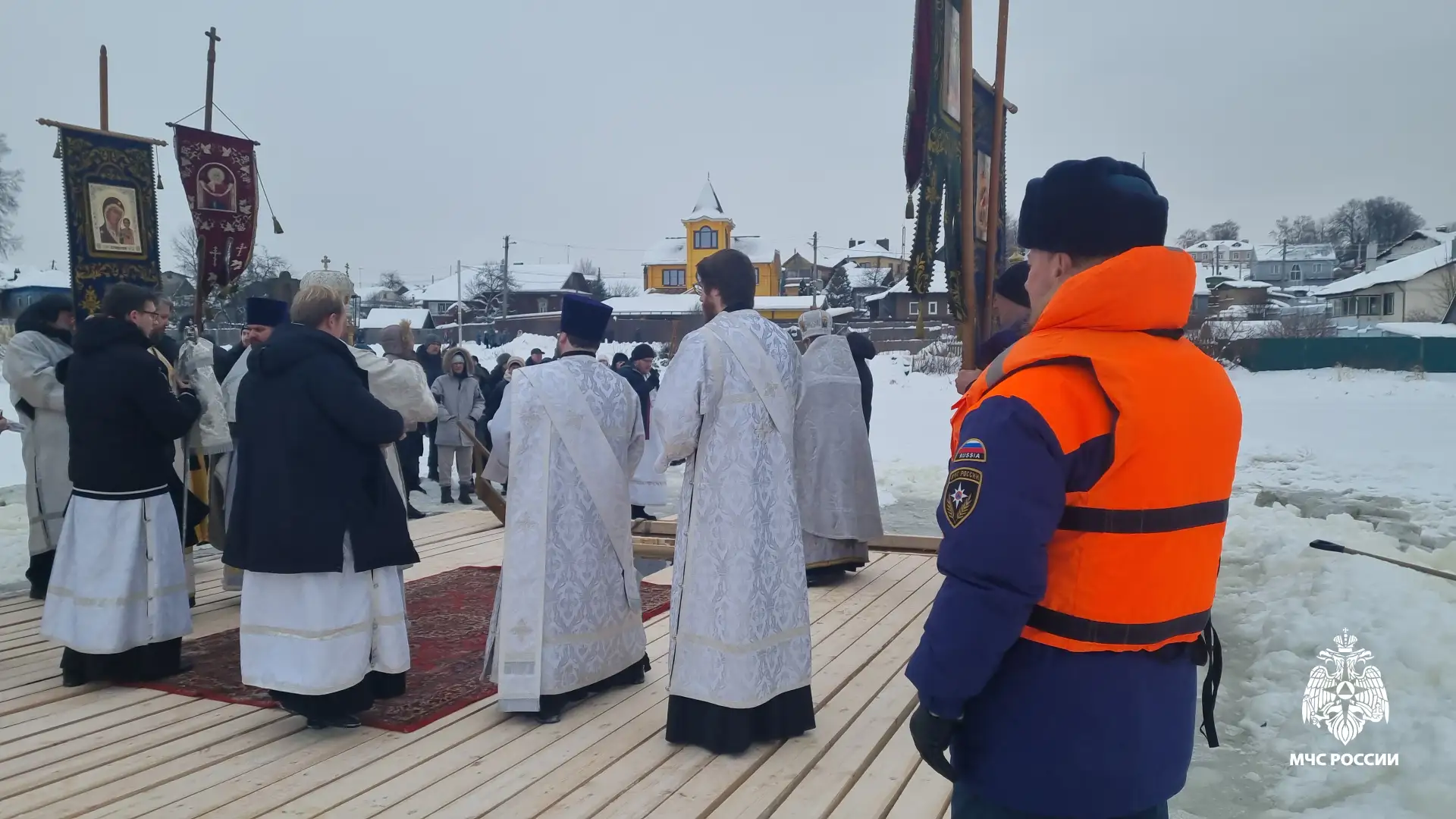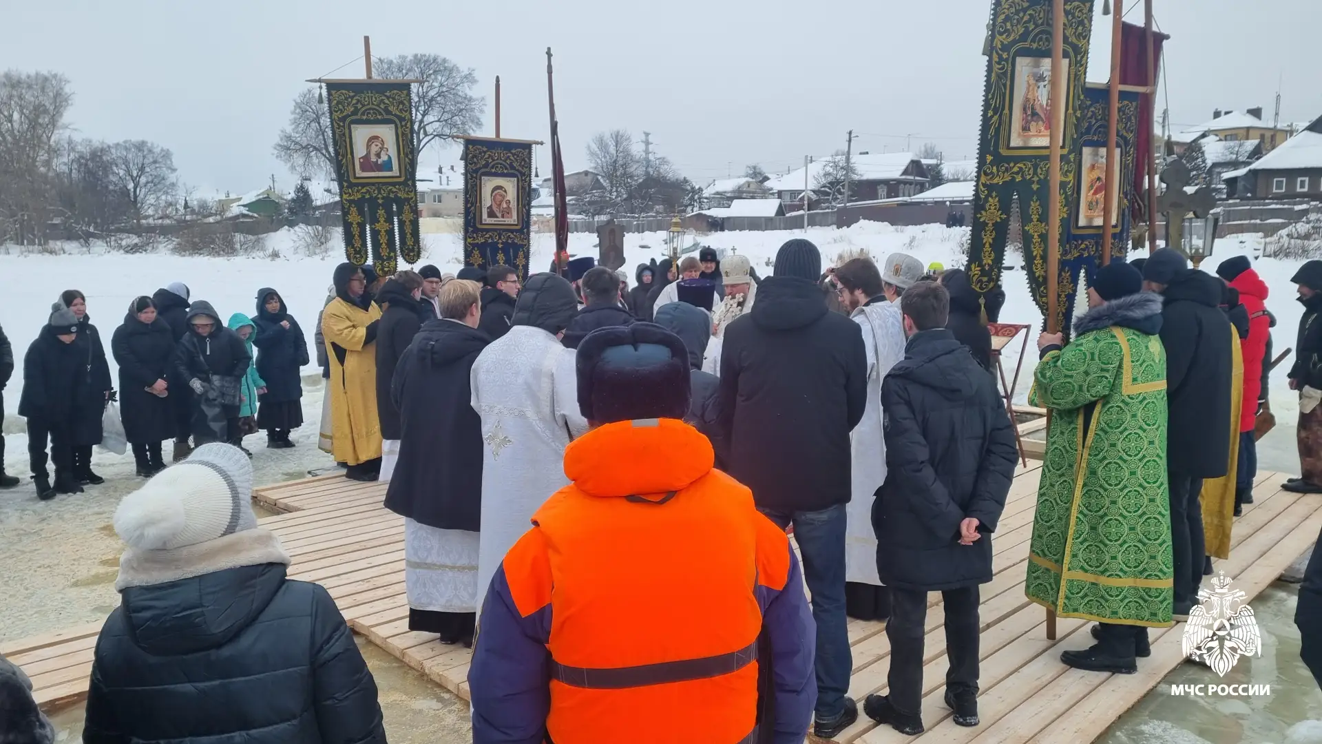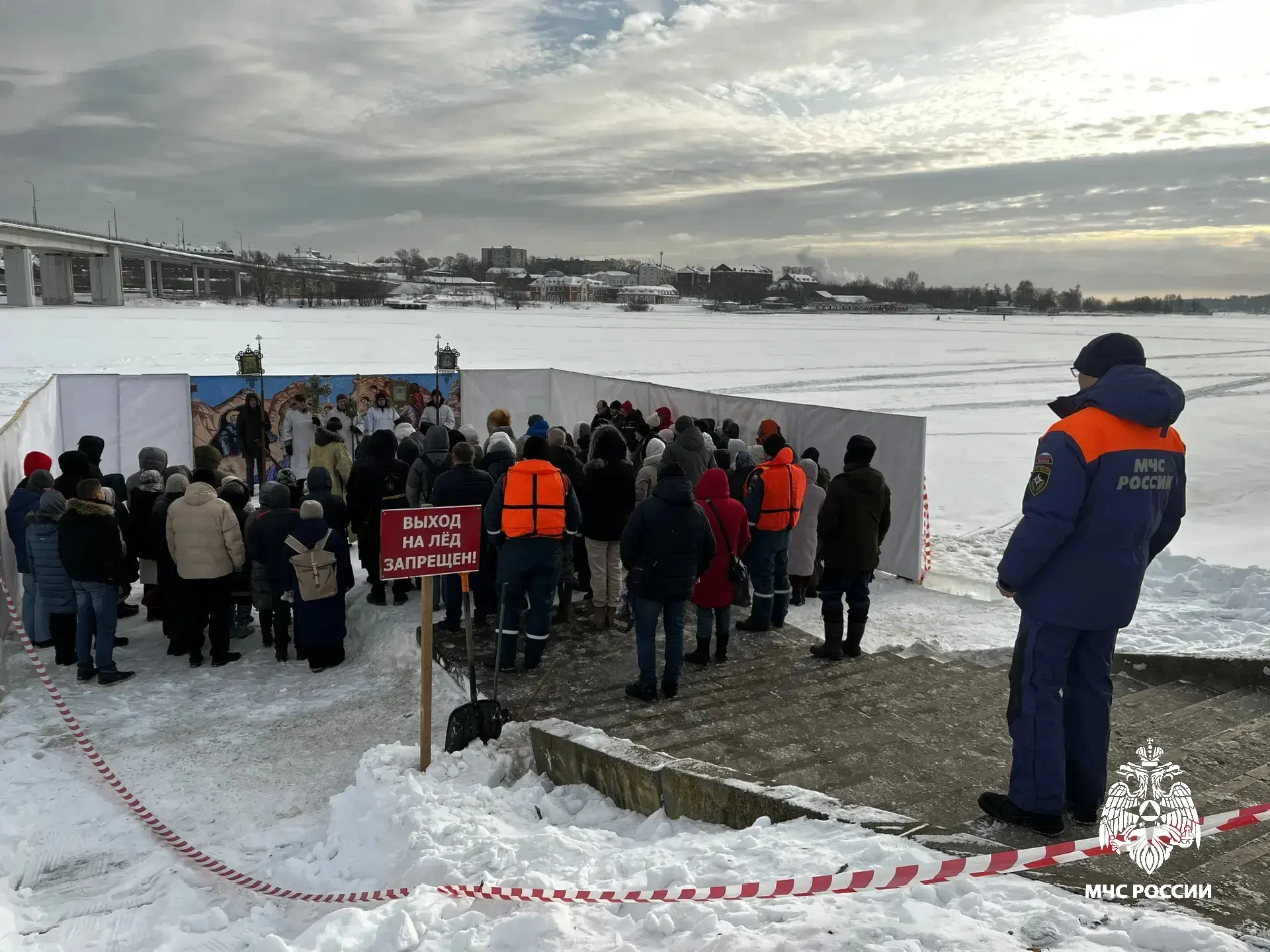 🔹В Костроме на реке Ключёвка после того, как воду в купели освятил митрополит Костромской и Нерехтский Ферапонт, начали обряд омовения первые верующие. У каждой купели дежурят инспекторы ГИМС и сотрудники пожарно-спасательных подразделений. Они помогают верующим спускаться в купель и выходить из нее.