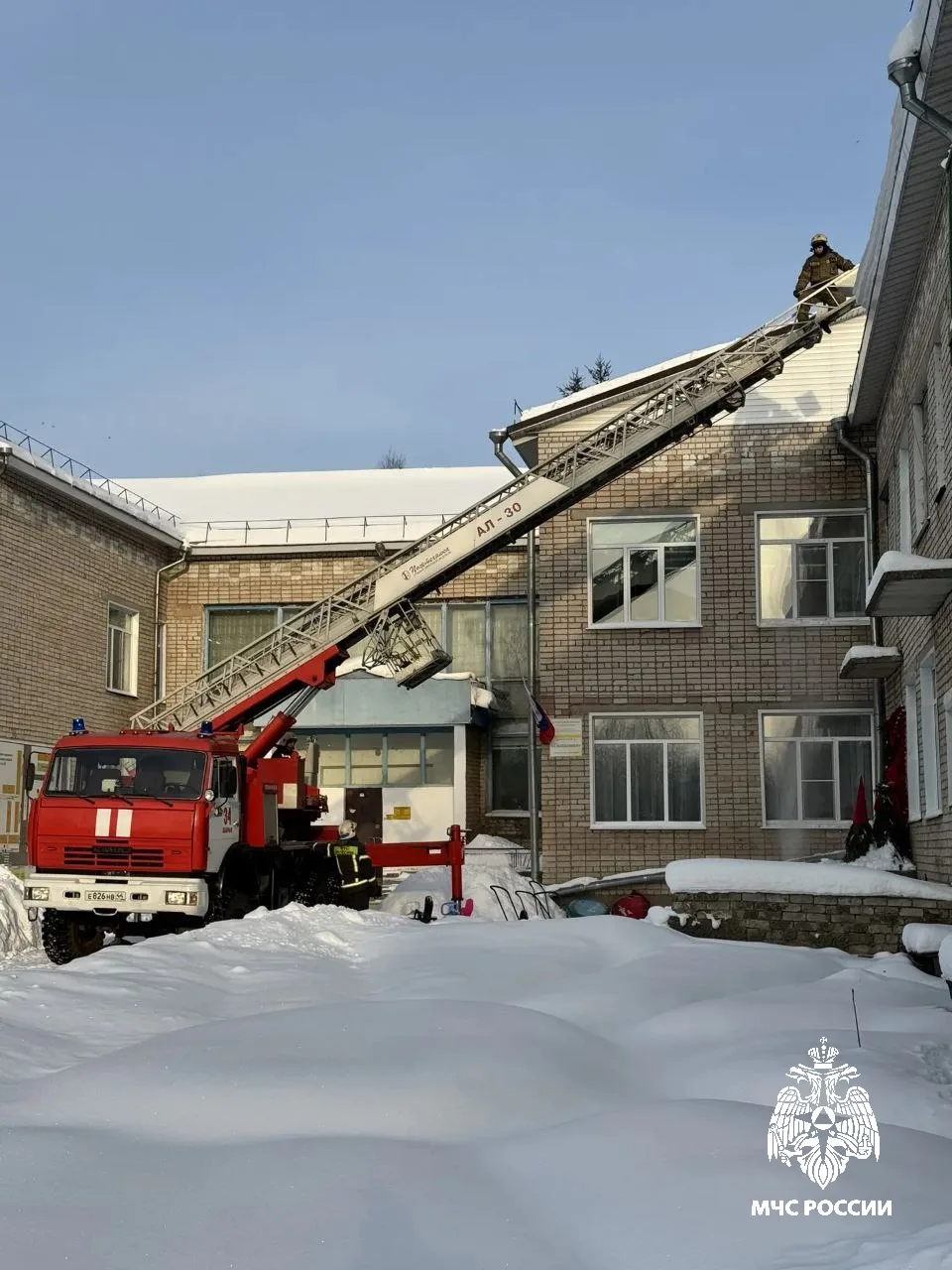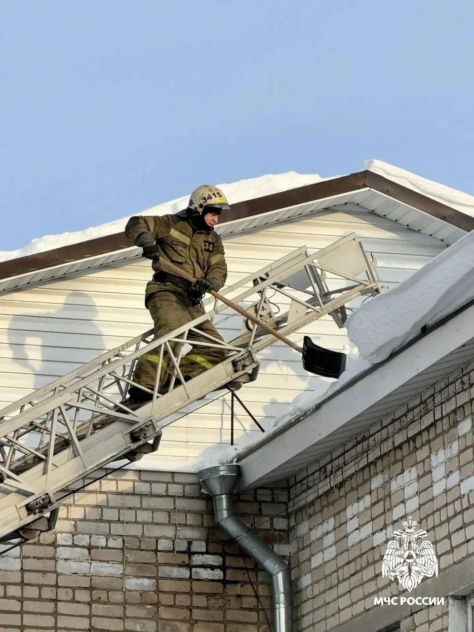 🚨Накануне пожарные г. Шарьи освободили от снега и наледи кровлю детского сада «Солнышко».
