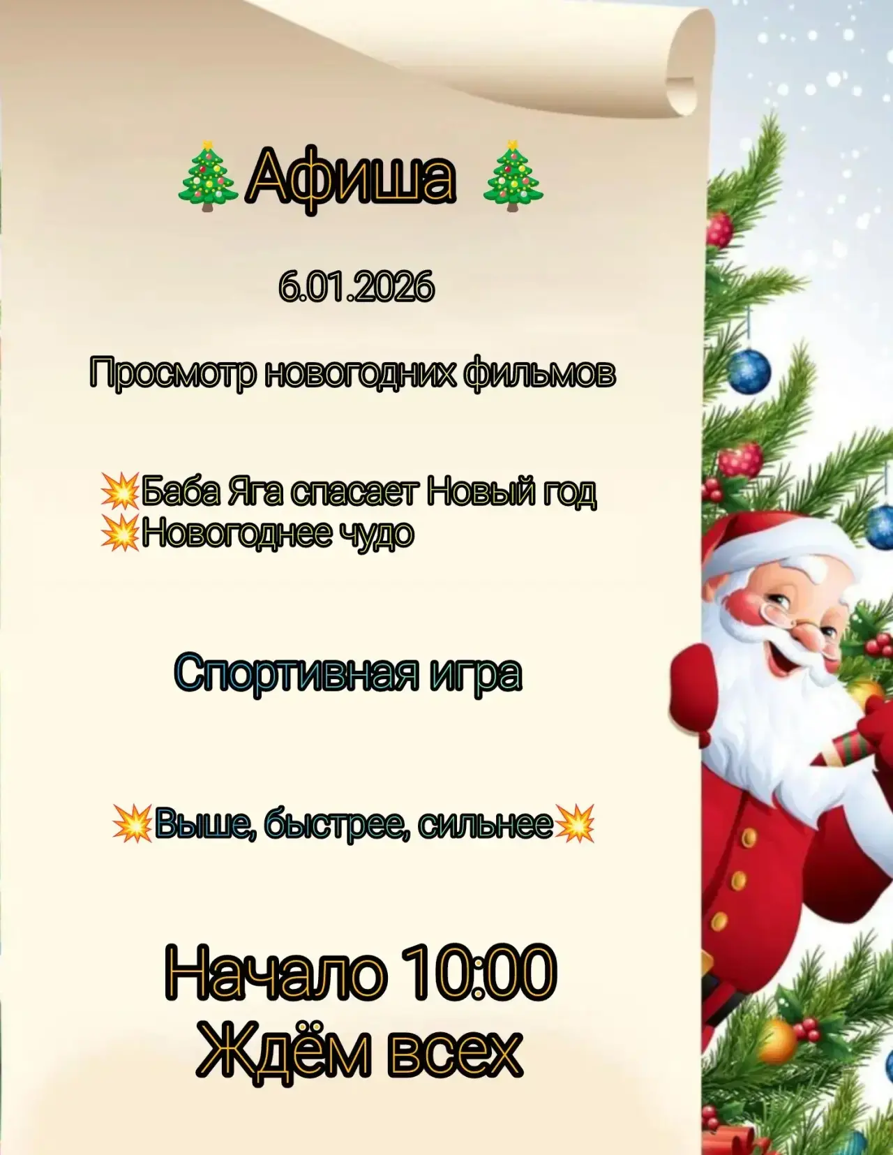 Каникулы - активное время для прогулок, встреч и совместных мероприятий. Даже фильмы хочется смотреть вместе, поэтому к выбору картин подходим осознанно. В преддверии Рождества каждый верит в чудо. Завтра мы смотрим добрый фильм Новогоднее чудо✨❄️ А также будем с Бабой Ягой спасать Новый год🤶