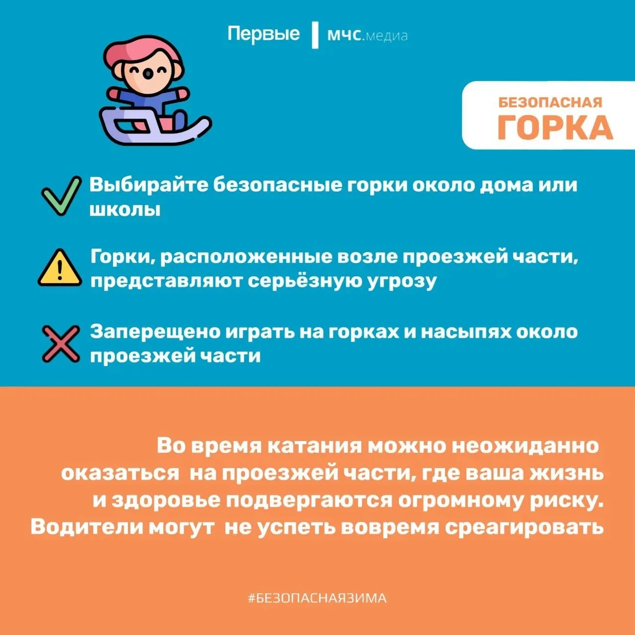 ☃️🛷🧤Зима — прекрасное время для активного отдыха и развлечений на свежем воздухе! Катание с горки — одно из любимых занятий детей и взрослых. Но, к сожалению, веселье может обернуться неприятностями, если не соблюдать элементарные правила безопасности.