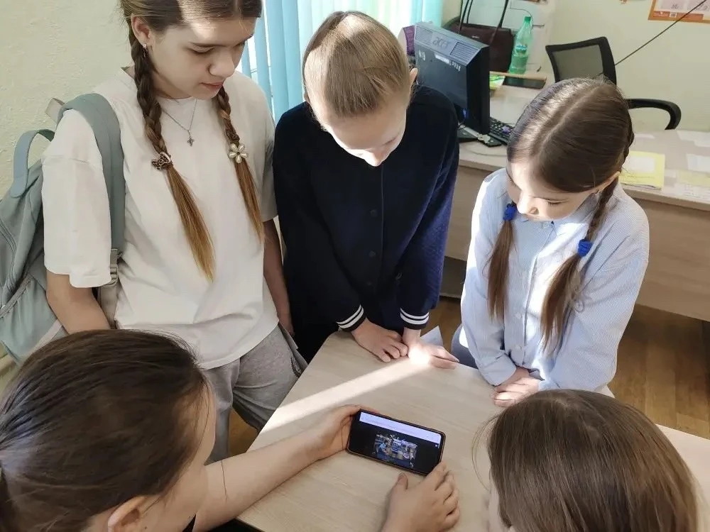 Ребята вместе с классным руководителем Загребельной Е. Н. снимают видеоанонс про Г. А. Илизарова.