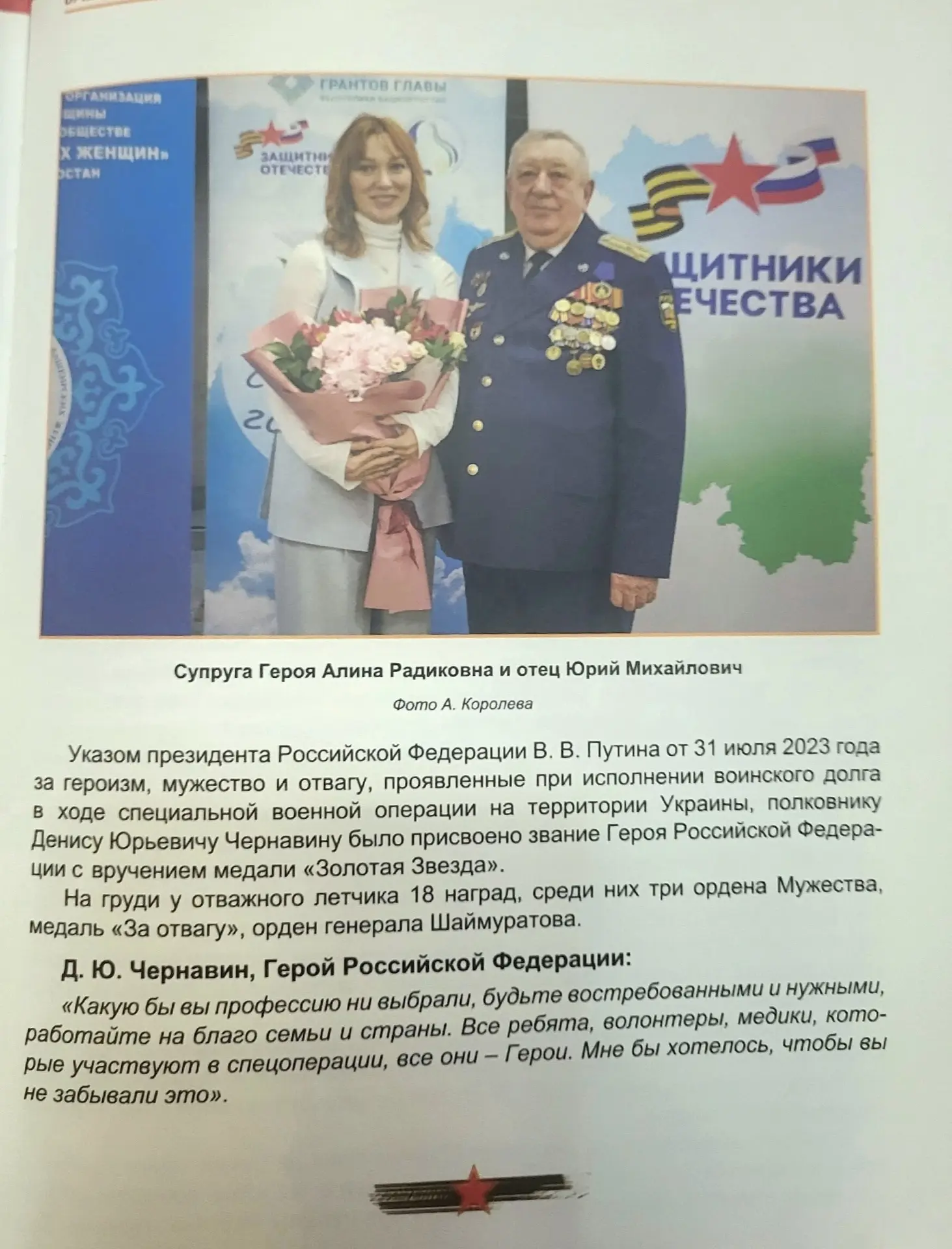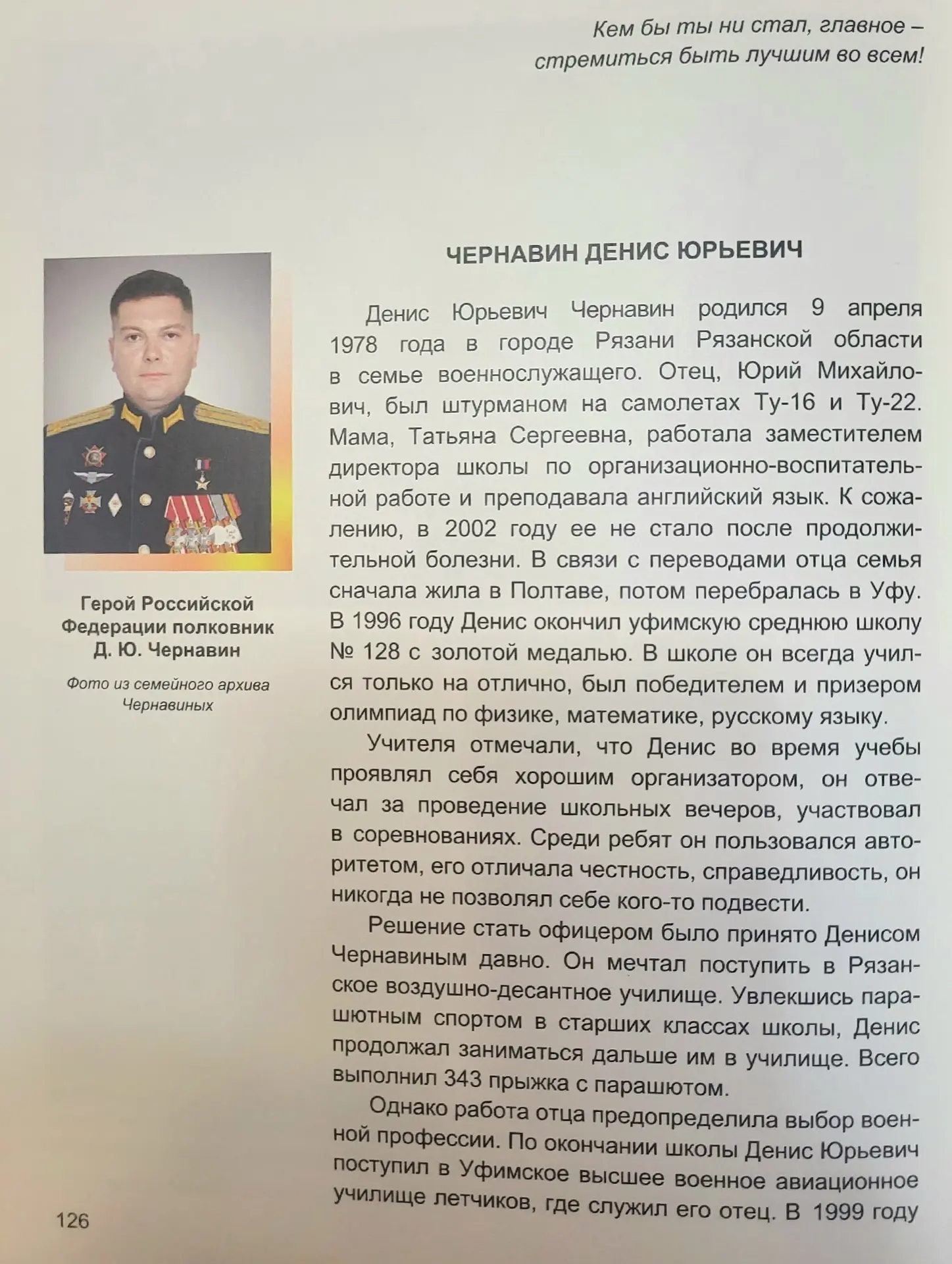 Пусть самоотверженность Героев нашей страны всегда будет для нас поводом для гордости и руководством к действию. Воспитывая в себе смелость, ответственность и человечность, мы делаем страну сильнее. И мы всегда помним: пока есть такие Герои как летчик Чернавин, готовых постоять за других, - будущее в надёжных руках. Будем достойны наших Героев!