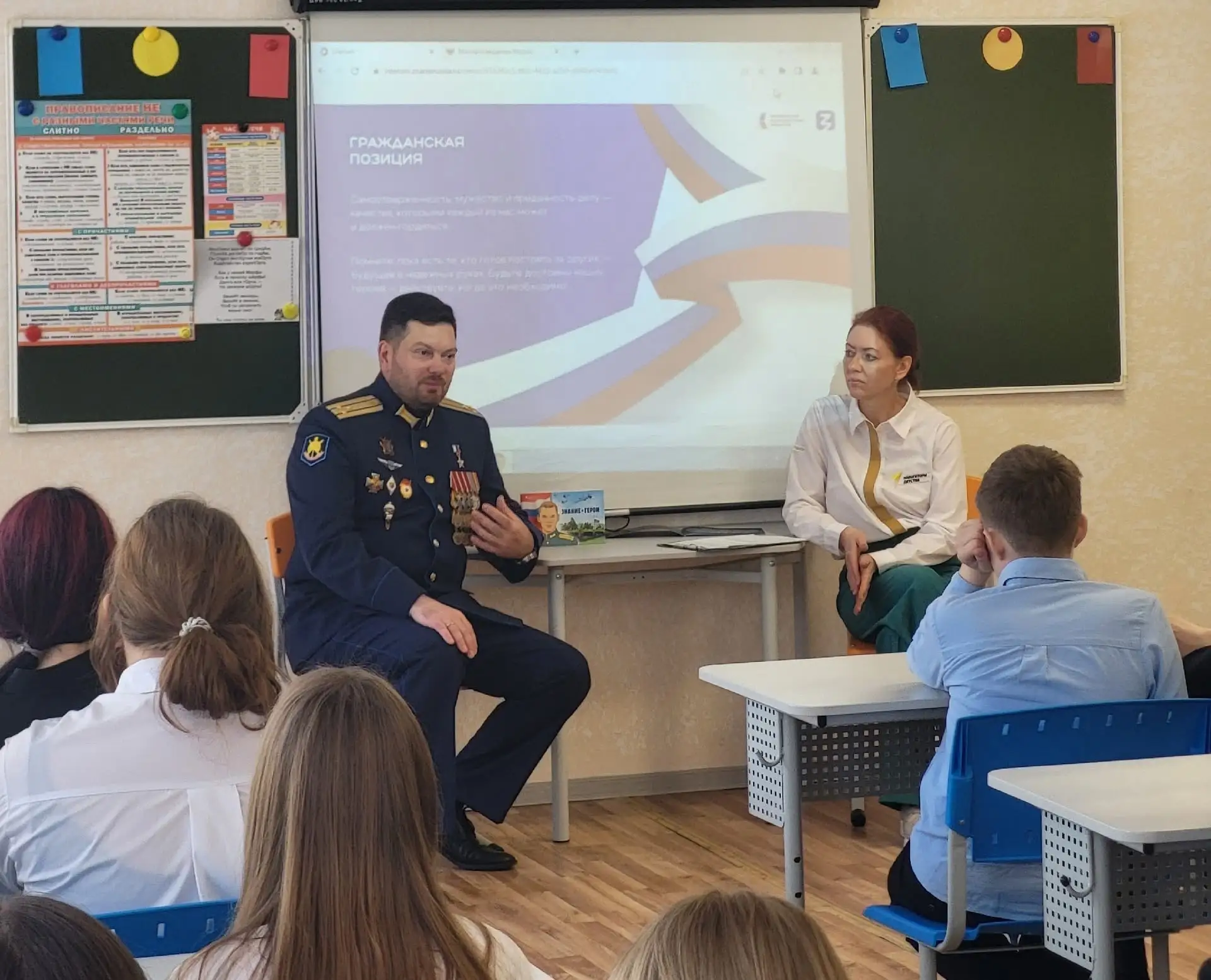Сегодня на встрече с ребятами 7в и 10в классов был человек, который лично жал руку министру обороны РФ и президенту России - летчик 1 класса, командир вертолетного полка, участник СВО, полковник в звании Героя России Денис Юрьевич Чернавин.
