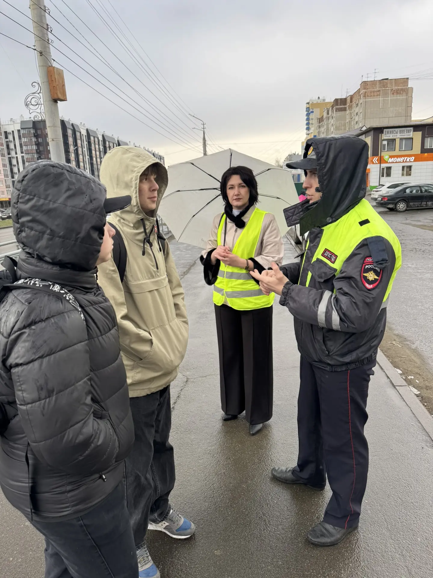 🚦Иван Владимирович совместно с родителями пятиклассников напомнил пешеходам правила безопасного пересечения проезжей части по пешеходному переходу, оснащенному светофором, призвал не срезать путь при пересечении, а двигаться строго по разметке.