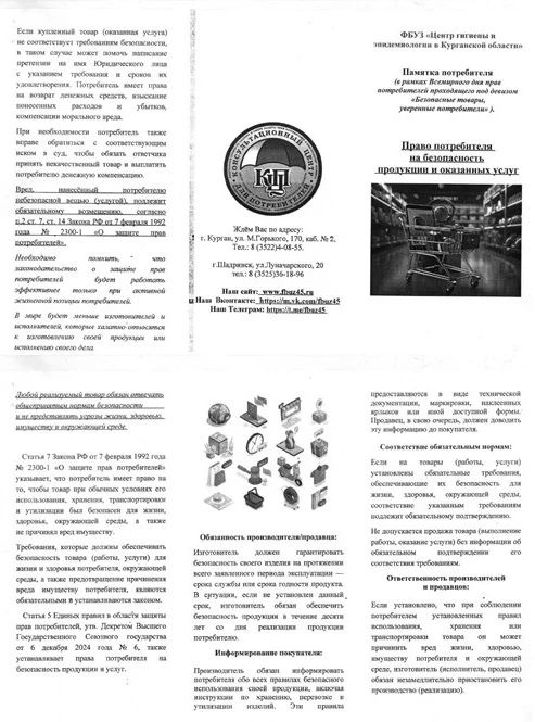 💢17 марта в рамках мероприятий, посвященных Всемирному дню прав потребителей, сотрудники Управления Роспотребнадзора по Курганской области провели выездные консультации. Они прошли на базе восьми отделов ГБУ «МФЦ» в городе Кургане и муниципальных округах.