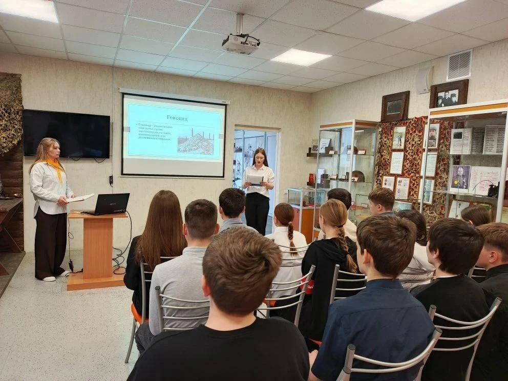 Ребята вместе с педагогами говорили о тяжёлых страницах истории, о преступлениях, которые не должны быть забыты. Для проведения уроков использовались материалы Автономной некоммерческой организации «Агентство социальных технологий и коммуникаций», что помогло сделать разговор максимально предметным и основанным на документальных свидетельствах.