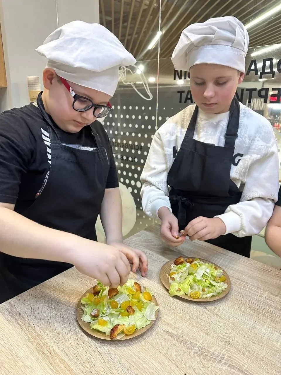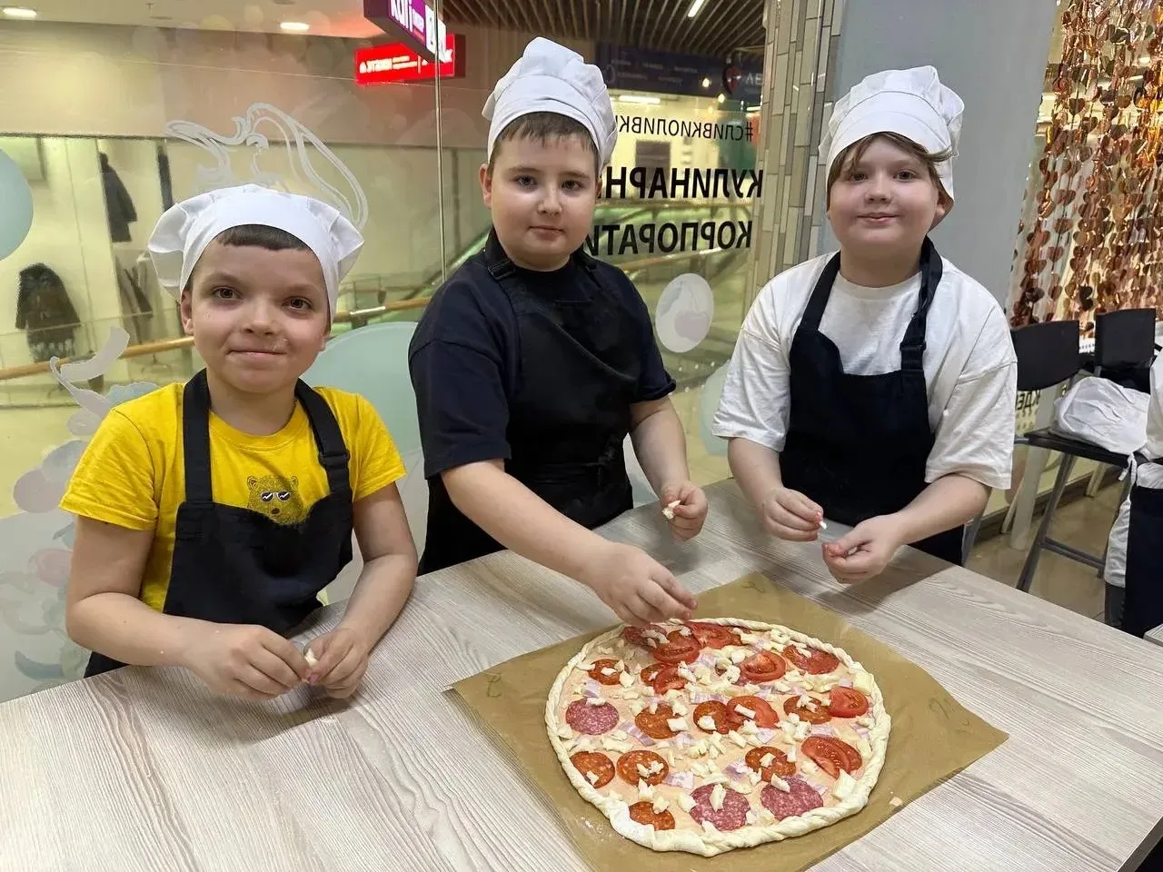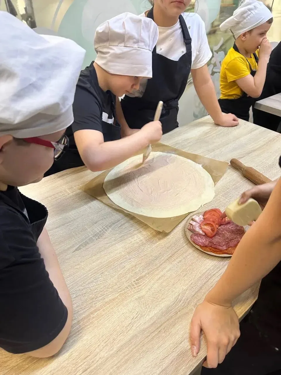 ℹ️ Дети попробовали себя в качестве шеф-поваров, приготовив пиццу, салат "Цезарь", пирожок с вишней и лимонад.
