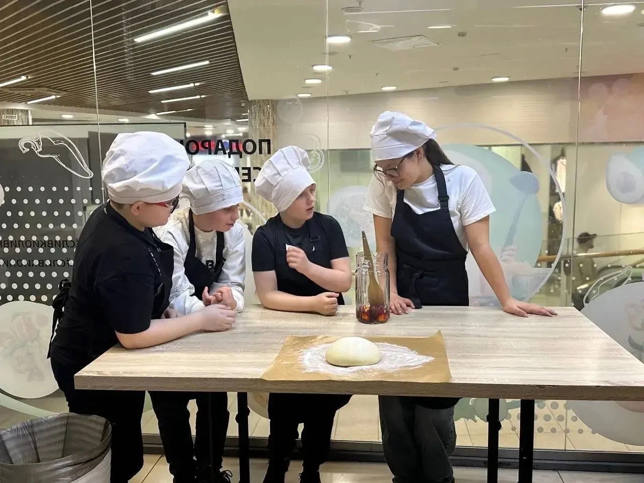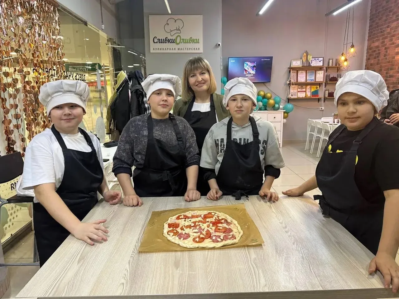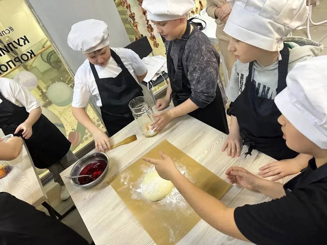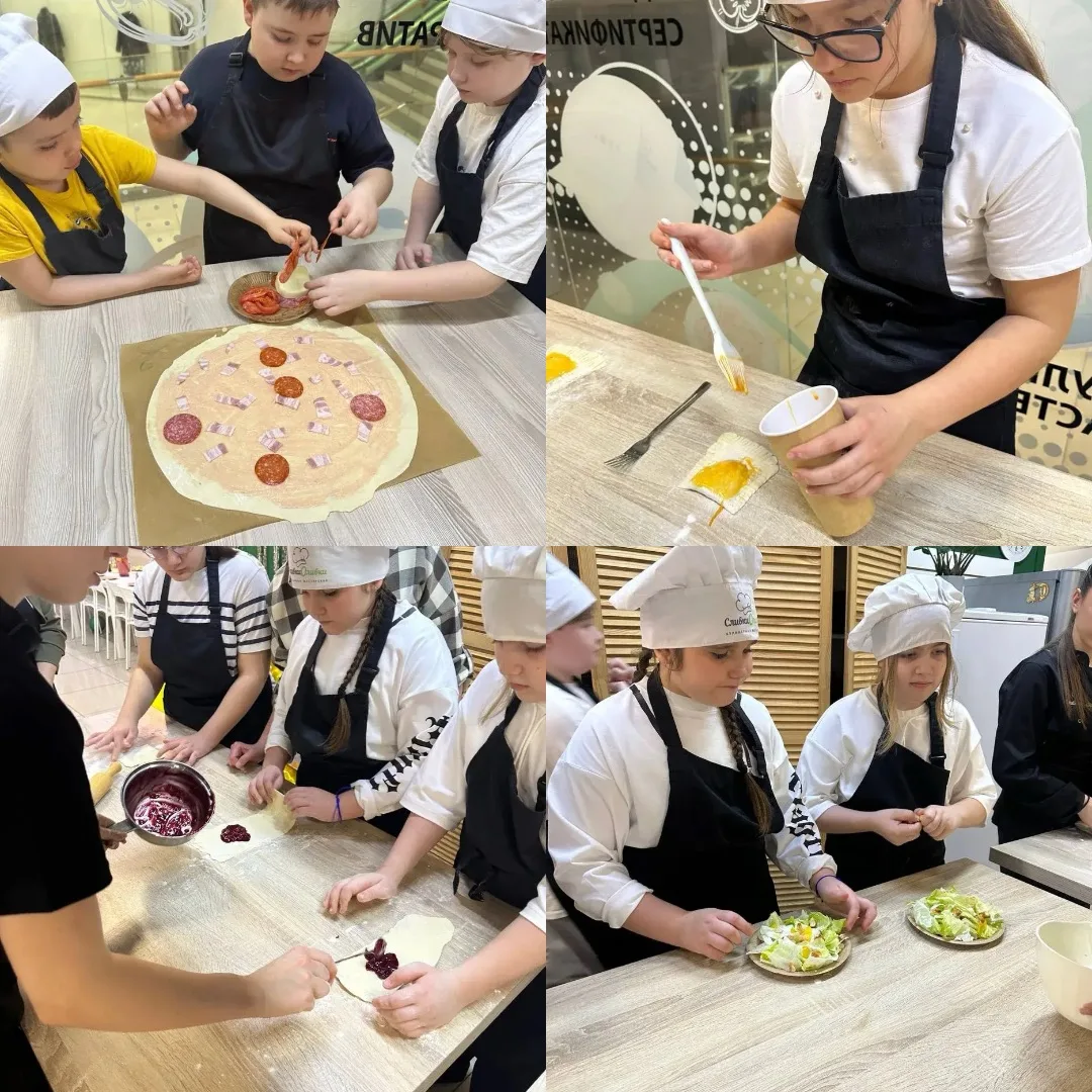 ℹ️ Дети попробовали себя в качестве шеф-поваров, приготовив пиццу, салат "Цезарь", пирожок с вишней и лимонад.