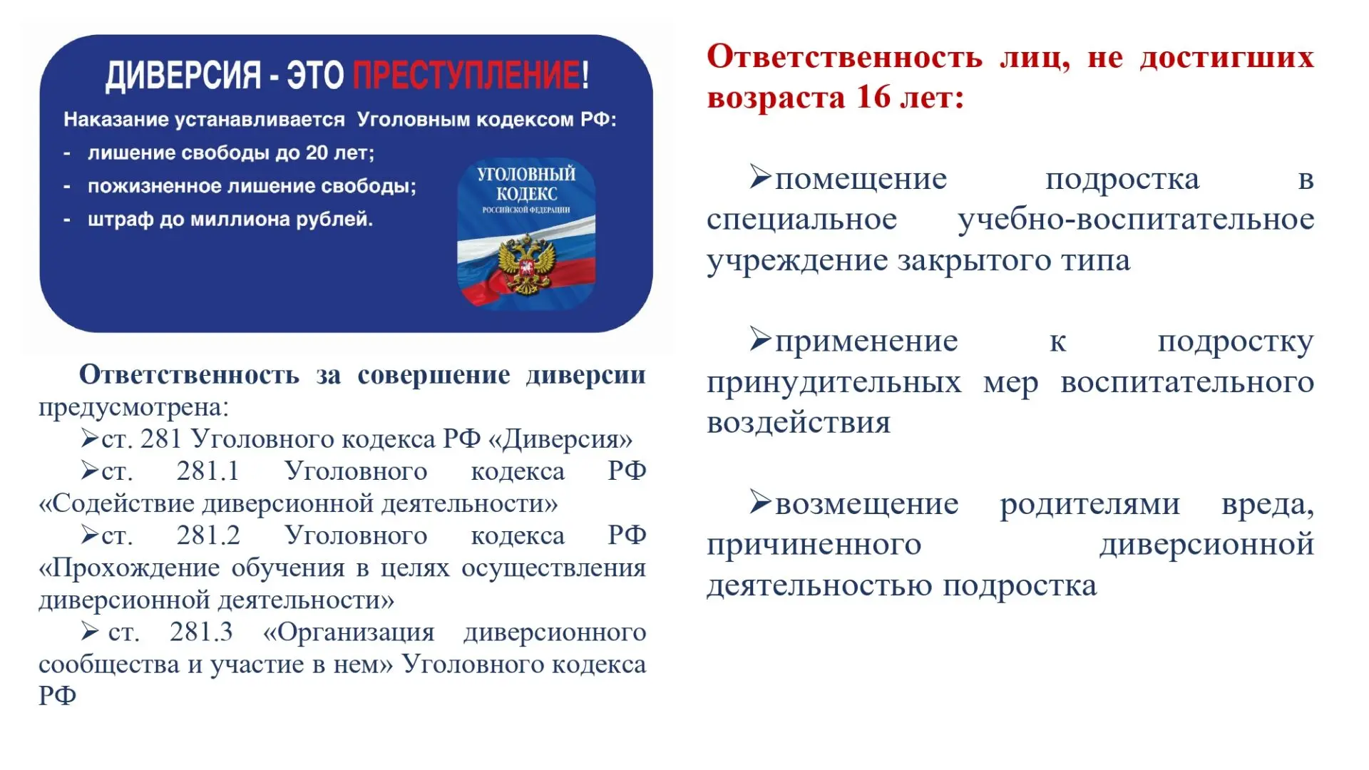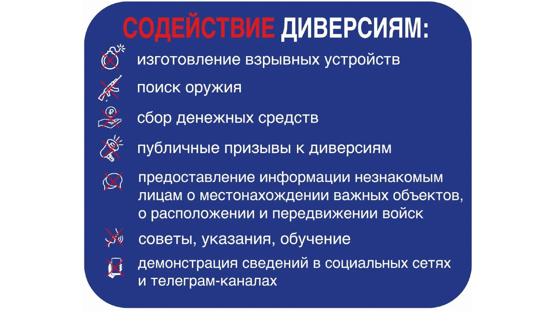 В настоящее время через различные социальные сети и мессенджеры ведется активная вербовка лиц для совершения различных диверсий.