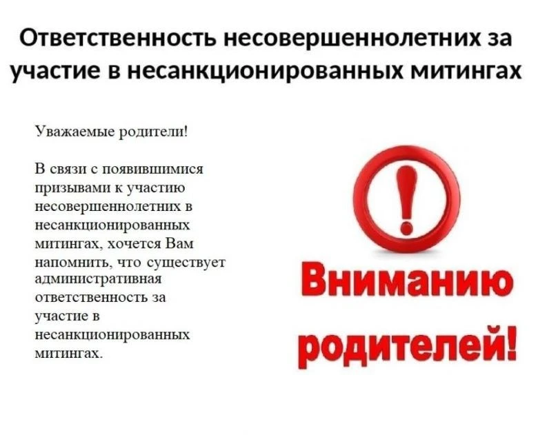 Напоминаем о недопустимости участия несовершеннолетних в публичных митингах и акциях протеста.